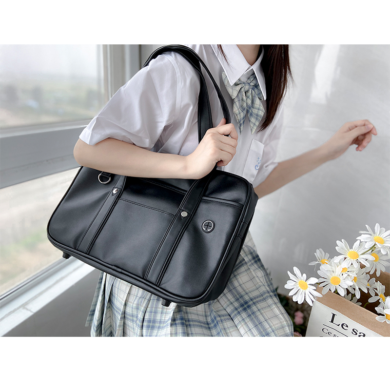 日系原創動漫二次元少女純色長手提肩背側背包學院風通勤基礎大容量軟妹包 (黑色)