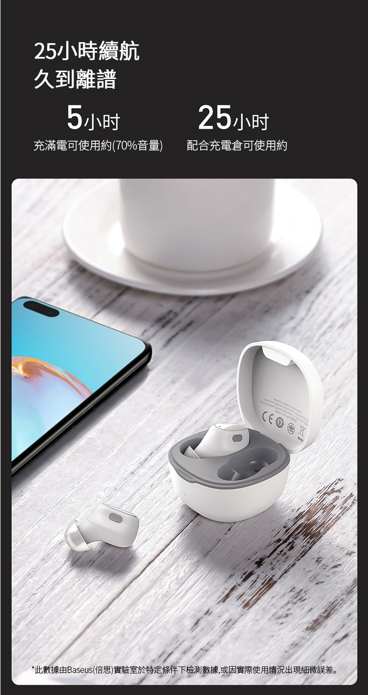 【大師純音級】【智慧真物理降噪】【舒適不掉淺入耳】【拿起即連】【超強續航】日本熱銷Baseus純享智慧降噪長續航舒適藍牙5.0真無線藍芽耳機