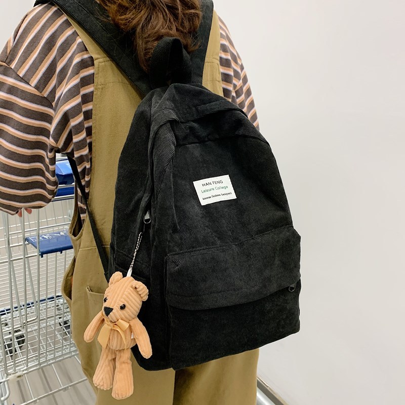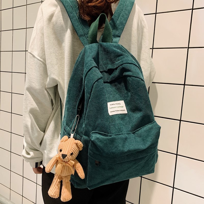 【日系燈芯絨森系後背包】日系文藝森系氣質純色書包親膚燈芯絨材質女雙肩後背包