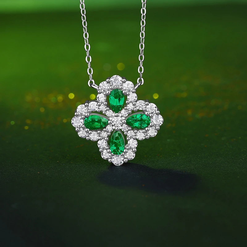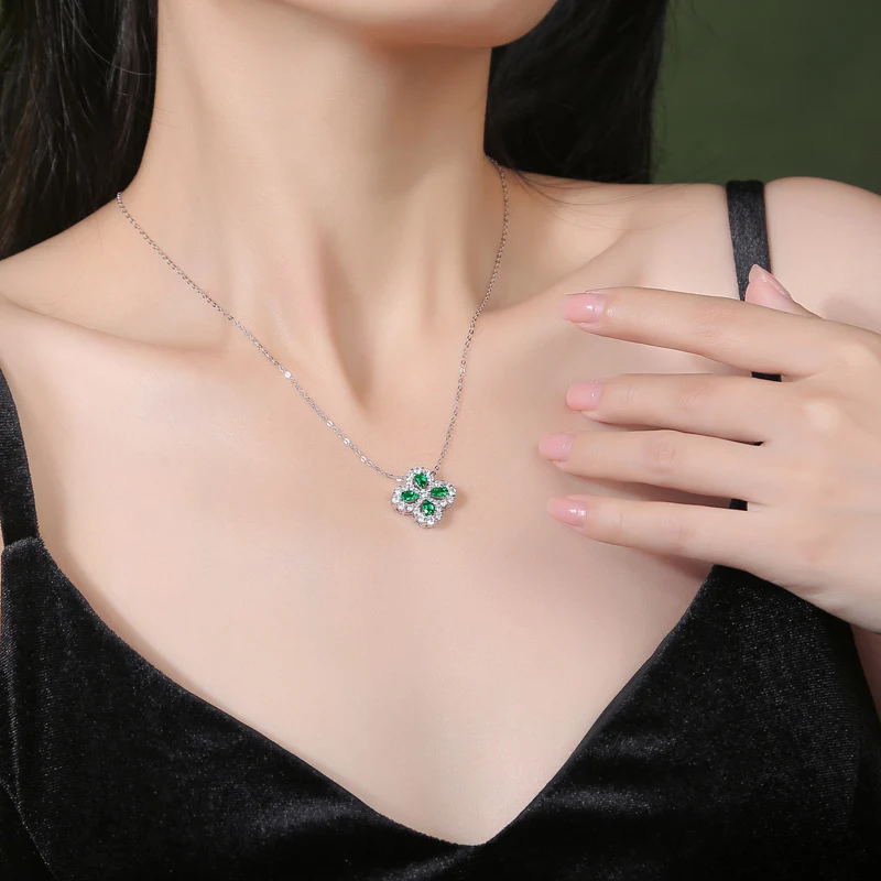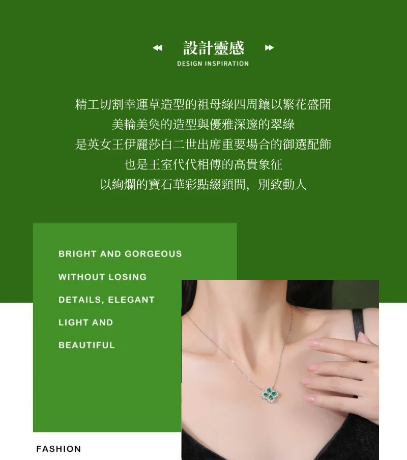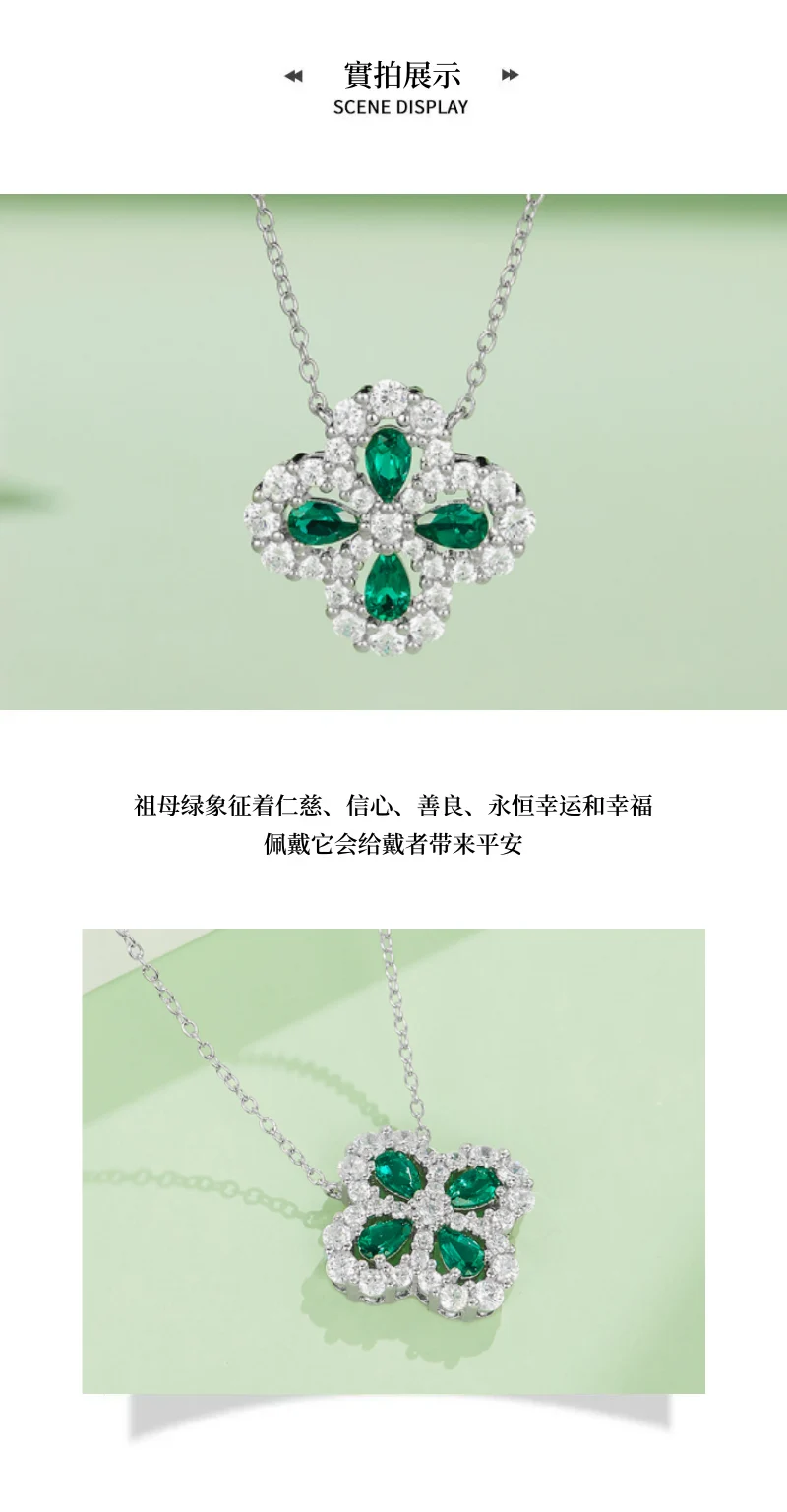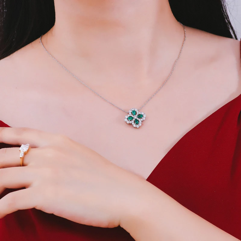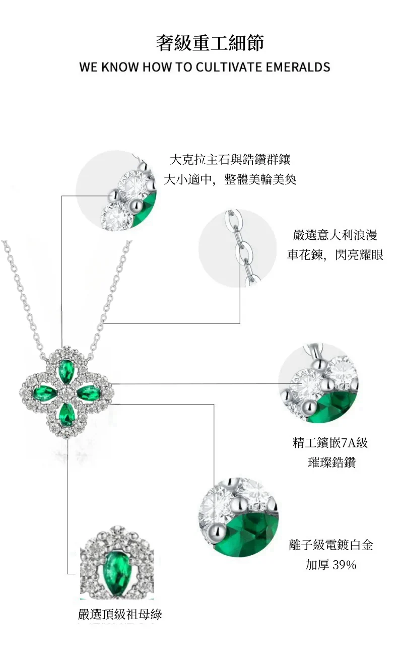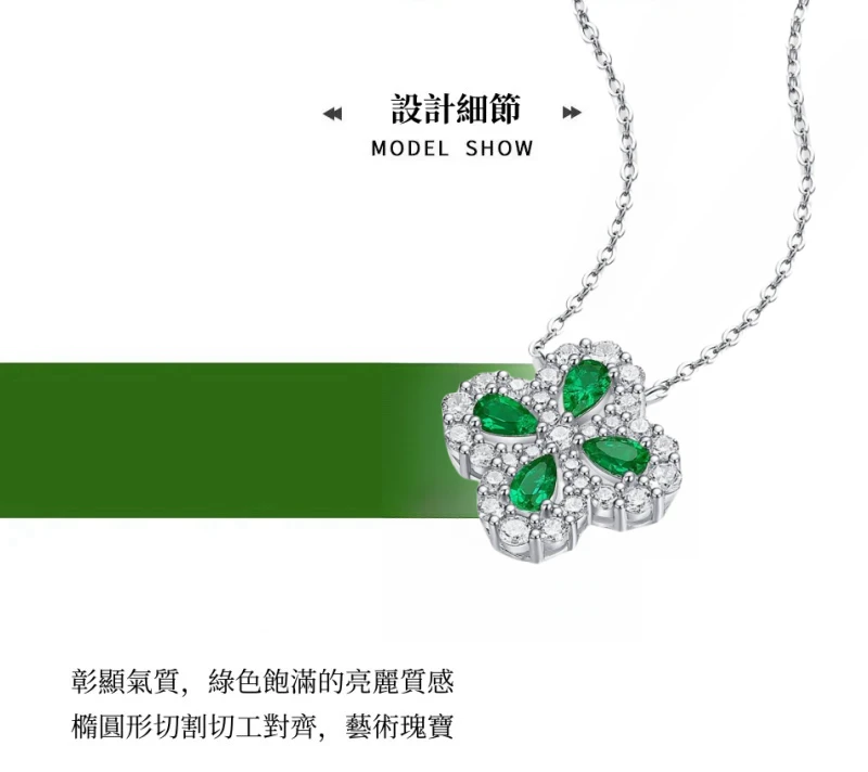 四葉幸運草 | 1克拉幸運祖母綠項鍊 | 哥倫比亞頂級再生祖母綠寶石 | 意大利進口車花鍊 | 奢級晚宴聚會郊遊女士祖母綠項鍊高級送女生禮物
