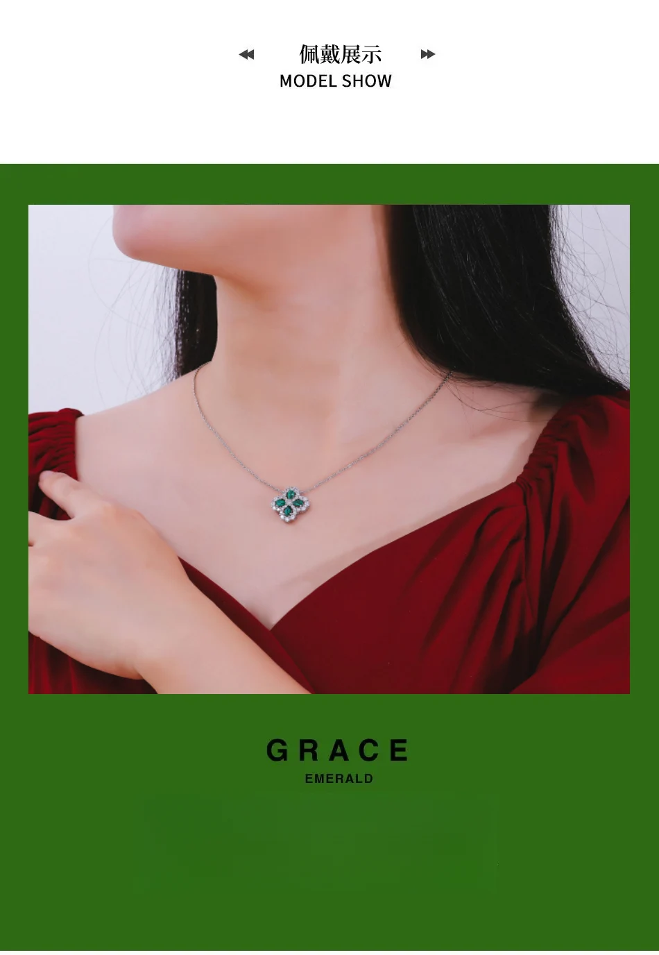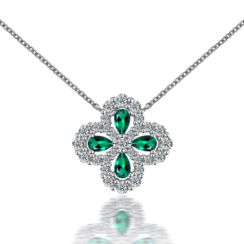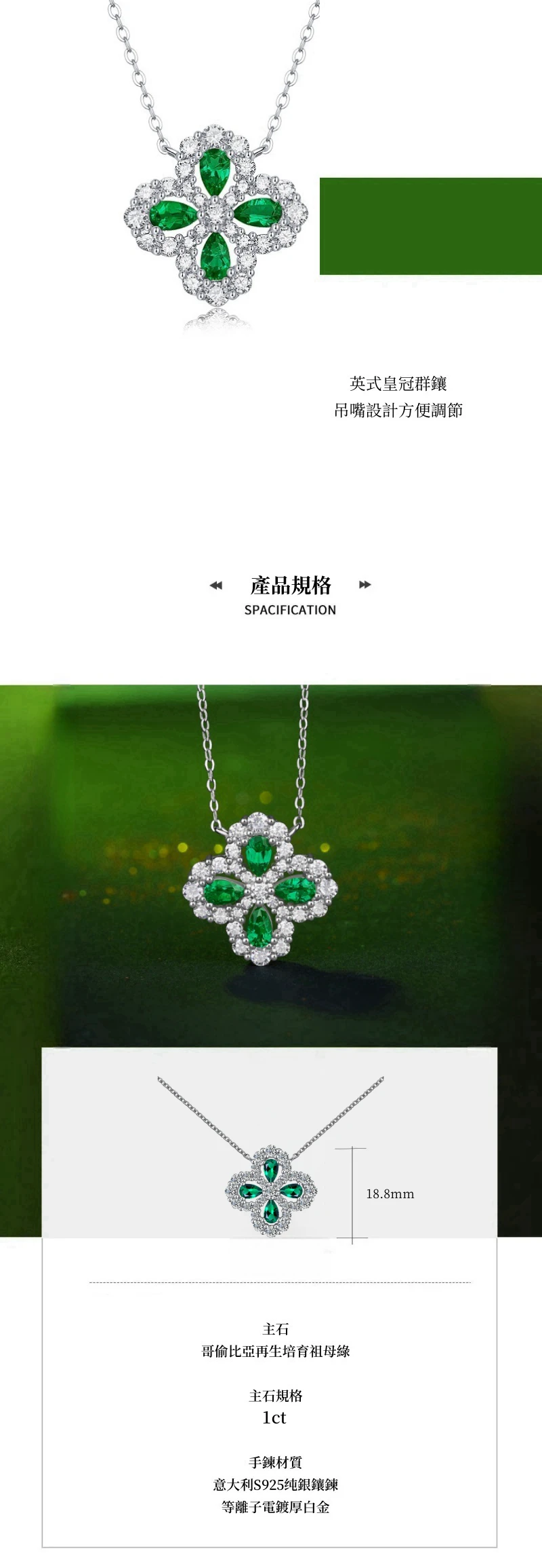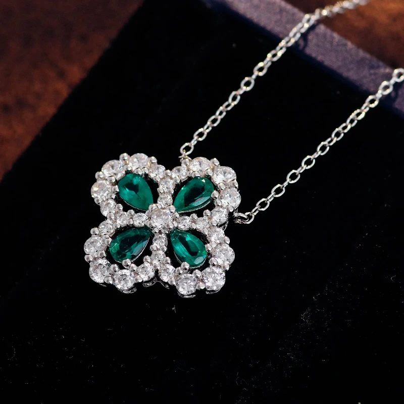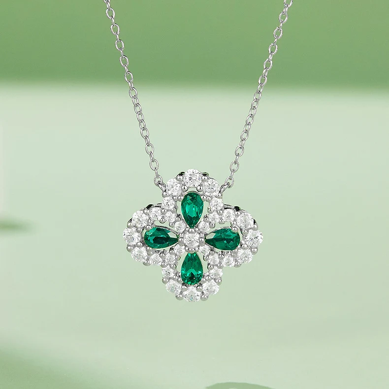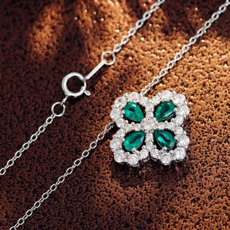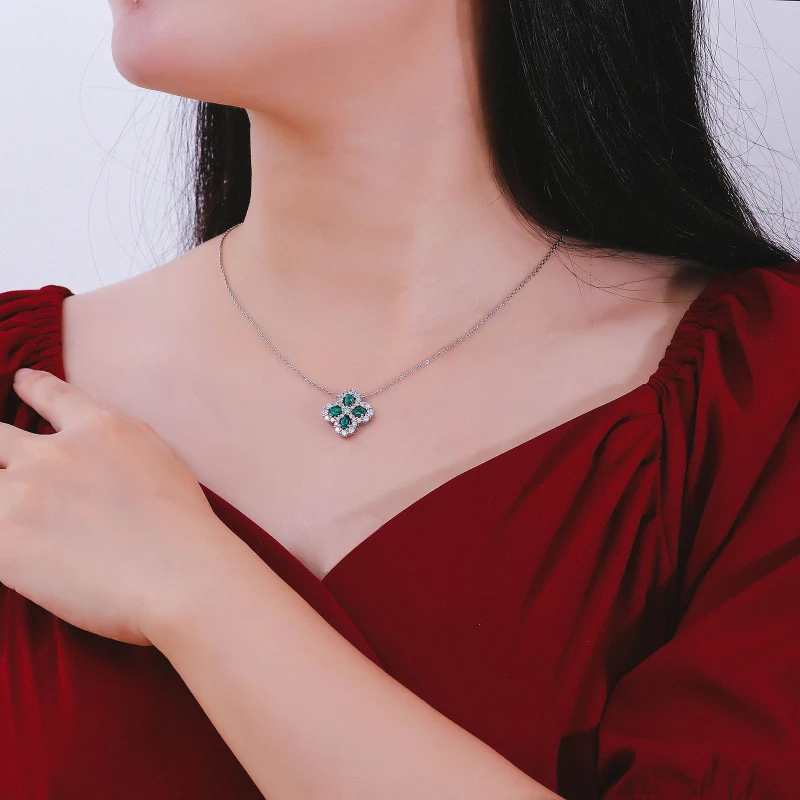 四葉幸運草 | 1克拉幸運祖母綠項鍊 | 哥倫比亞頂級再生祖母綠寶石 | 意大利進口車花鍊 | 奢級晚宴聚會郊遊女士祖母綠項鍊高級送女生禮物