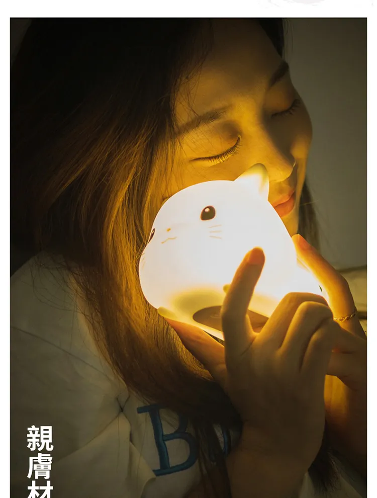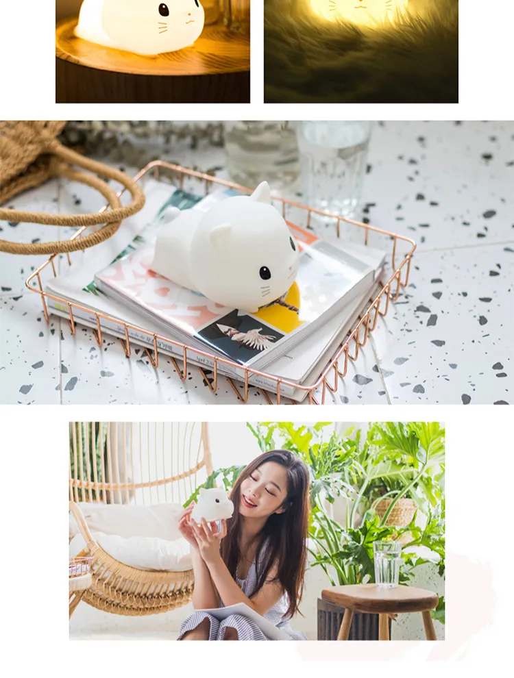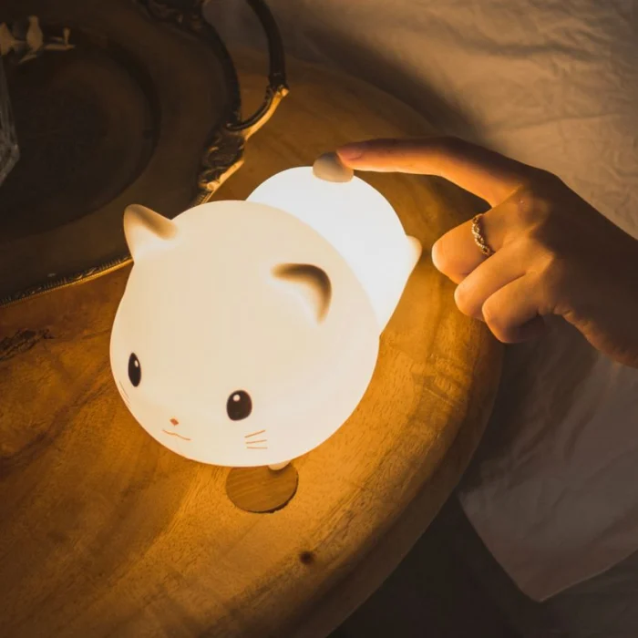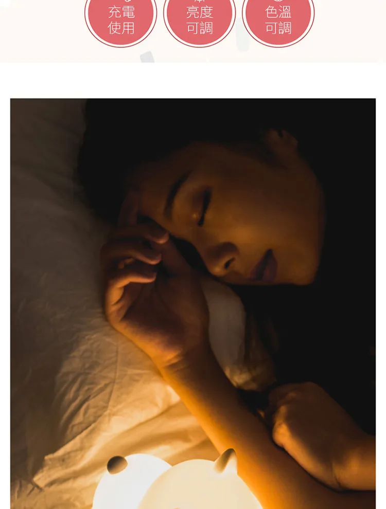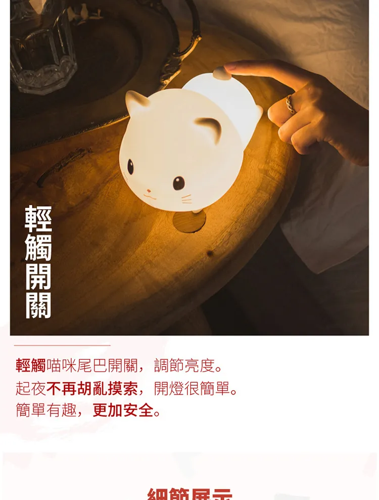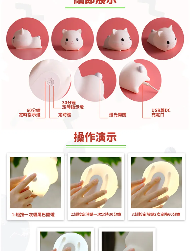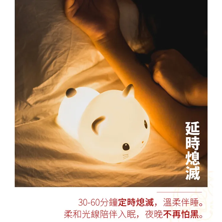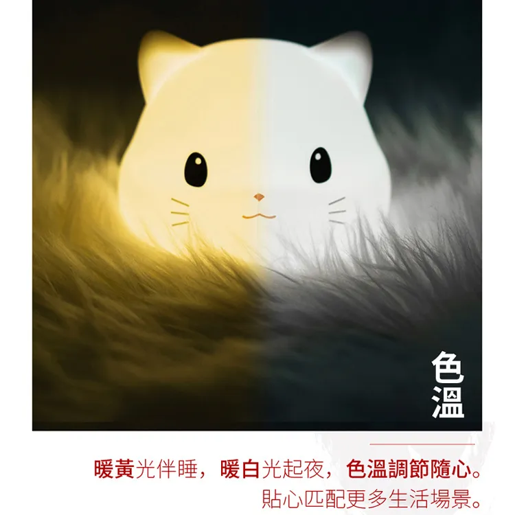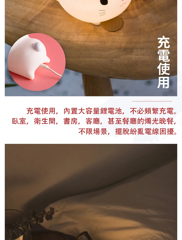超萌可愛Q彈呆呆喵伴睡小夜燈 | 定時熄燈溫柔伴睡 | 亮度色溫輕鬆可調 | 親膚環保矽膠材質 | 超萌送女生禮物貓咪造型LED小夜燈