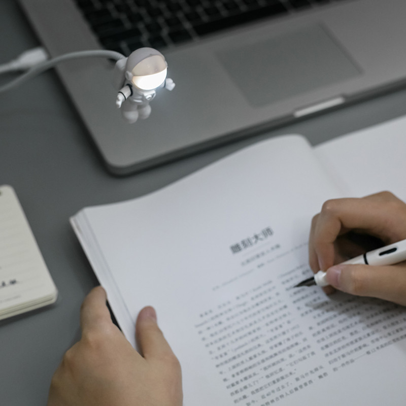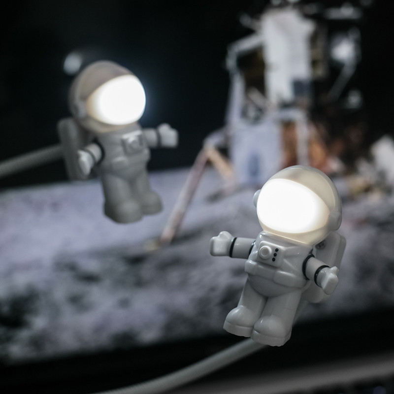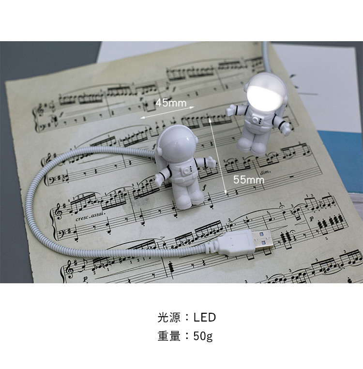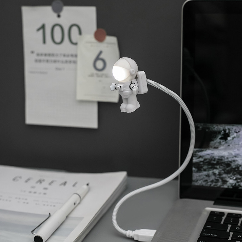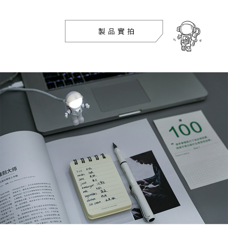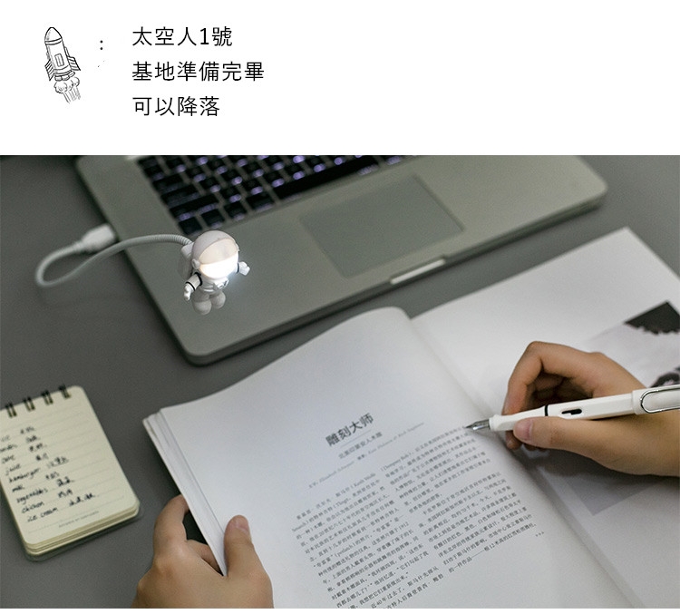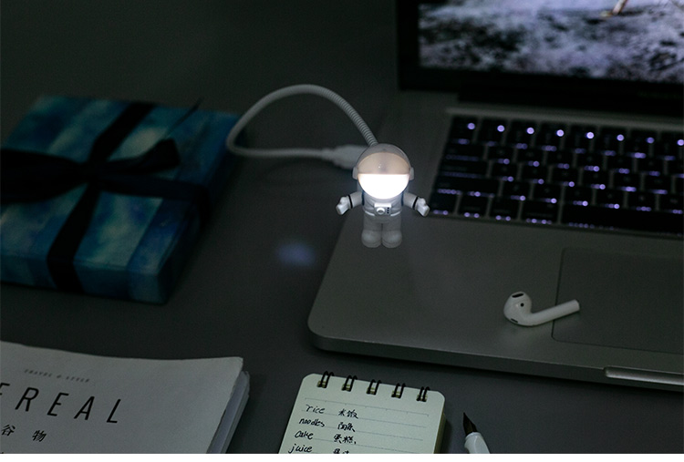 太空人造型小夜燈,可愛有趣又實用 節狀金屬USB軟管,可隨意扭動 LED燈源,光照柔和護眼 反轉頭盔可以開關燈光