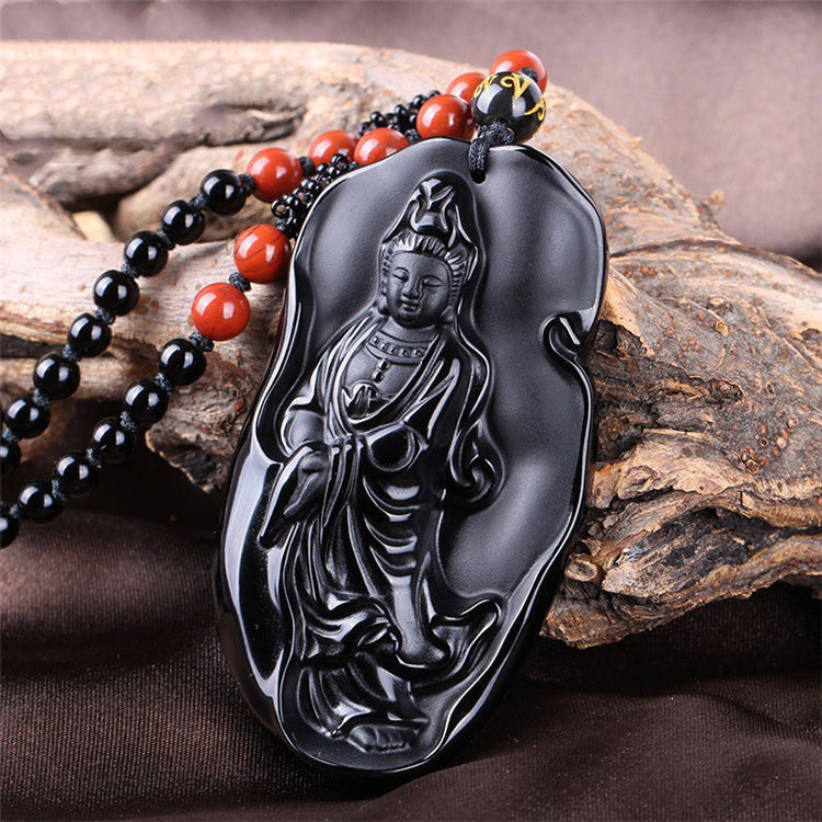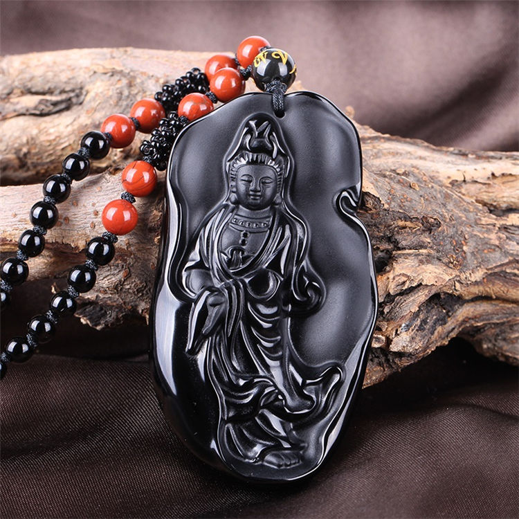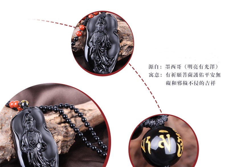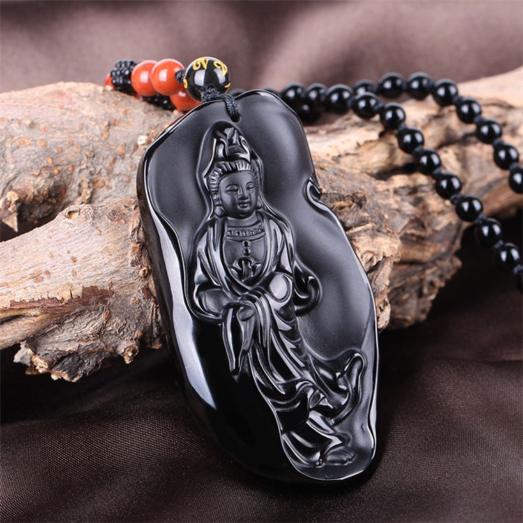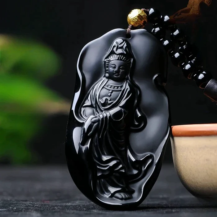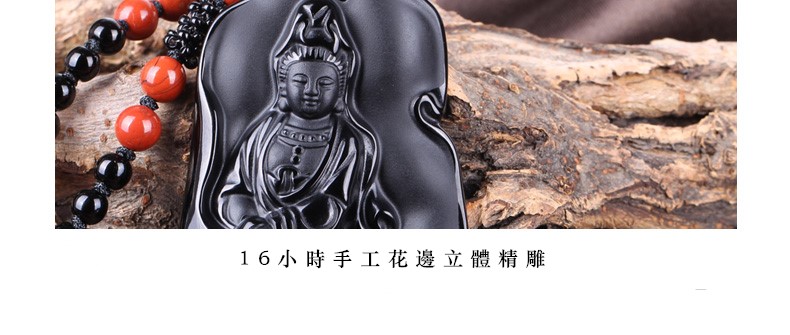 所願皆成 | 護身納福 | 天然黑曜石荷葉觀音項鍊 | 16小時手工立體精雕 | 配贈黑瑪瑙珠鍊 | 2025觀世音菩薩天然黑曜石項鍊