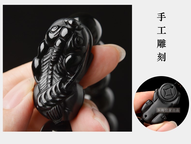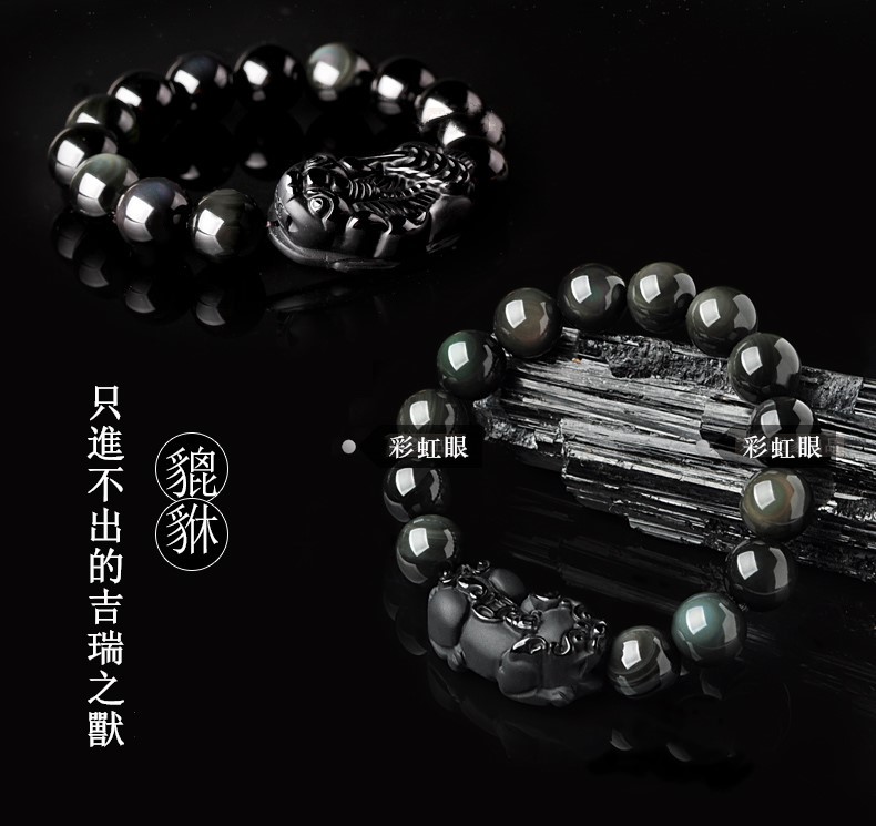 【冰種黑曜貔貅】收藏級6A冰種黑曜石辟邪招財貔貅手鍊