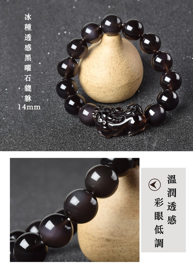 • 款式7:冰種透感黑曜石貔貅14mm