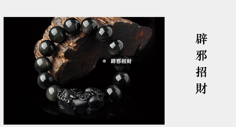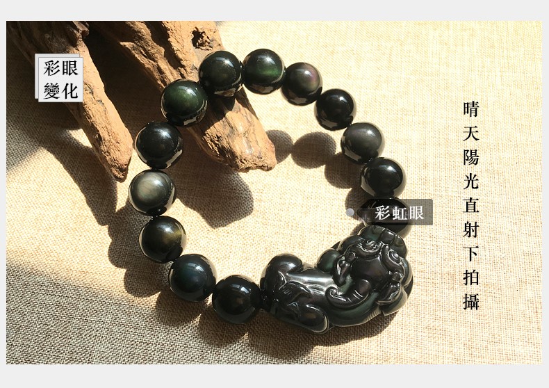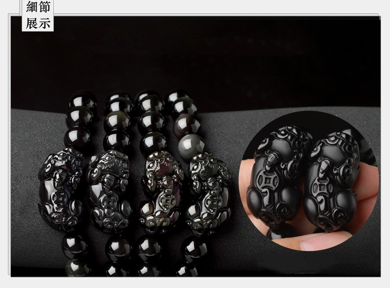 【冰種黑曜貔貅】收藏級6A冰種黑曜石辟邪招財貔貅手鍊