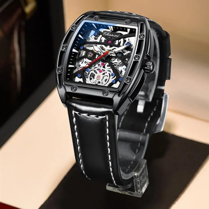 賽博朋克機械美學 | 全自動機械機芯 | 雙面極致鏤空 | 礦物強化藍光鏡面 | 小牛皮錶帶 | 30米防水 | 夜光顯示 | CHENXI潮流工藝男士機械手錶