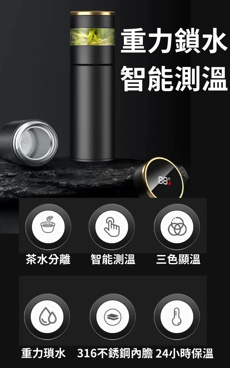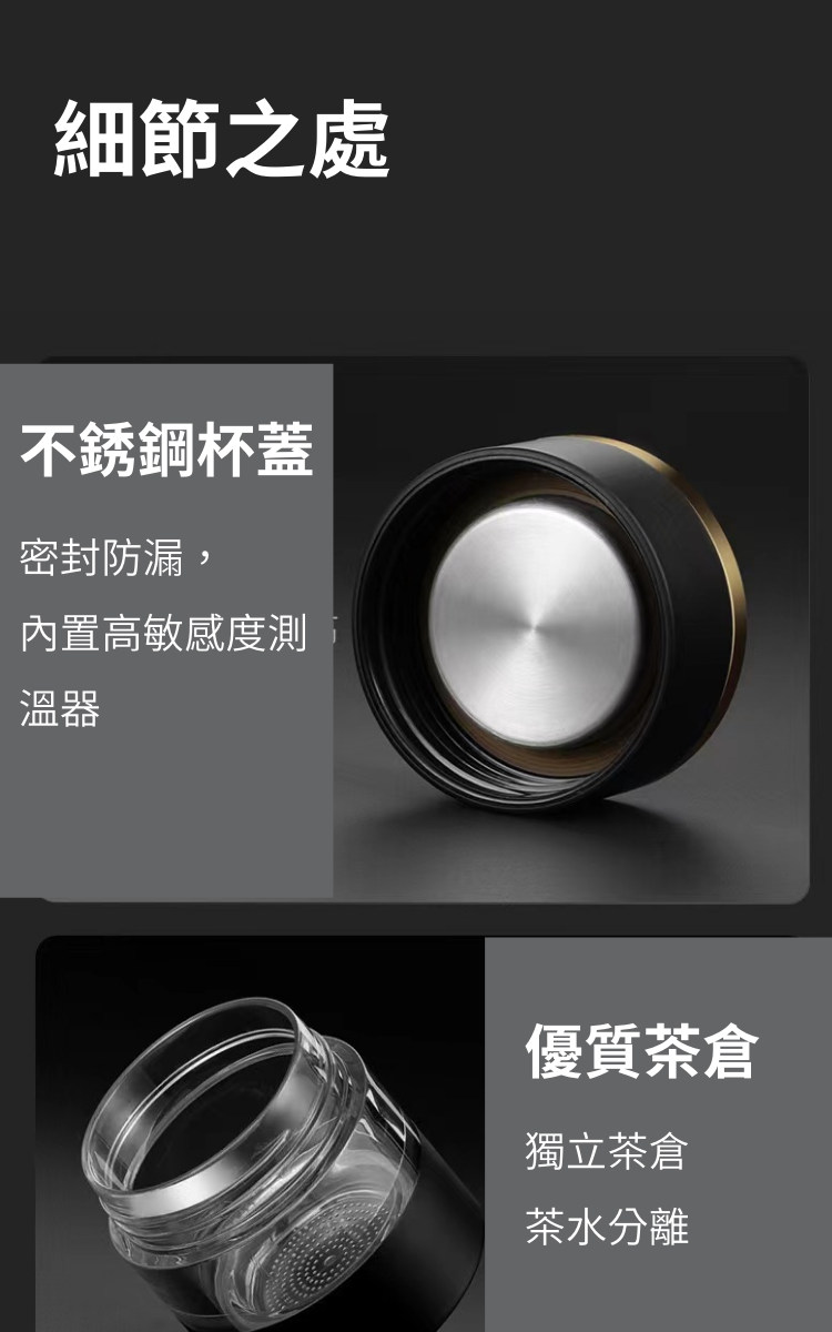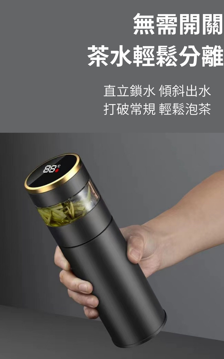 智慧測溫防燙嘴保溫泡茶杯 | 茶水分離獨立茶倉 | 安全316奧氏體不鏽鋼 | 超貼心禮物創新重力鎖水智慧測溫316不鏽鋼內膽泡茶杯保溫瓶