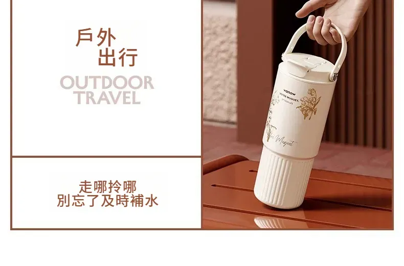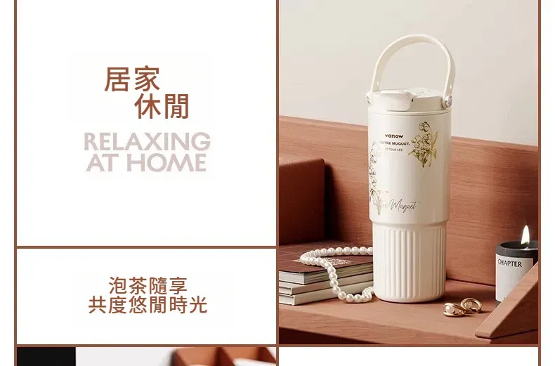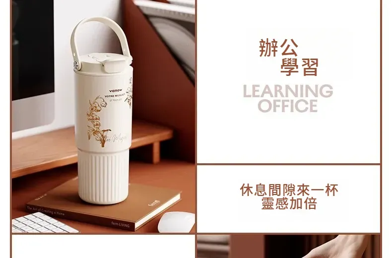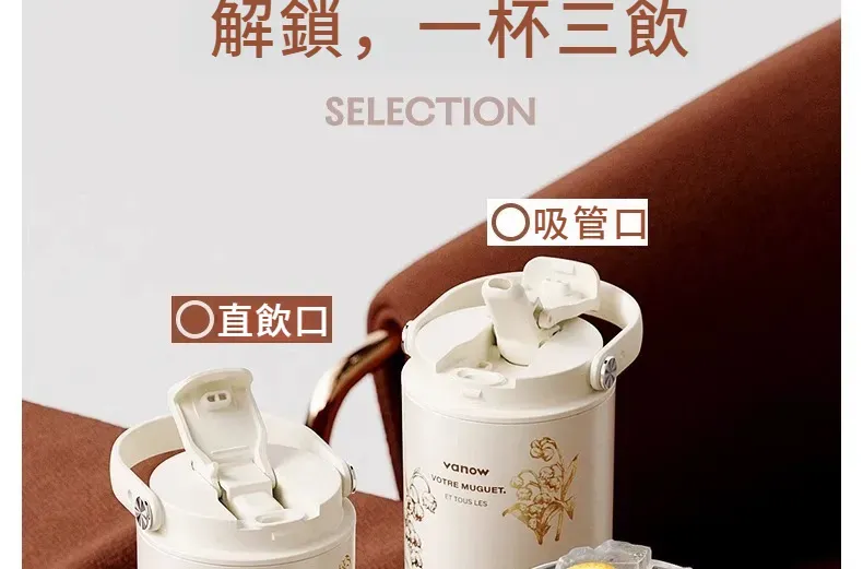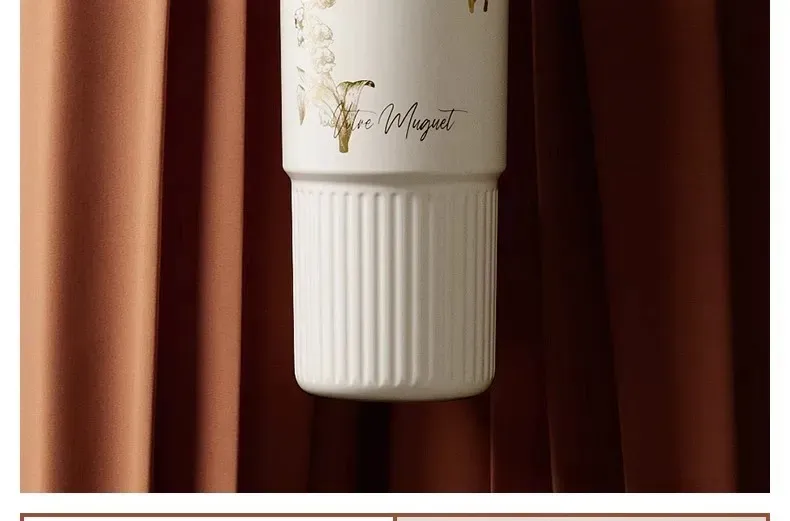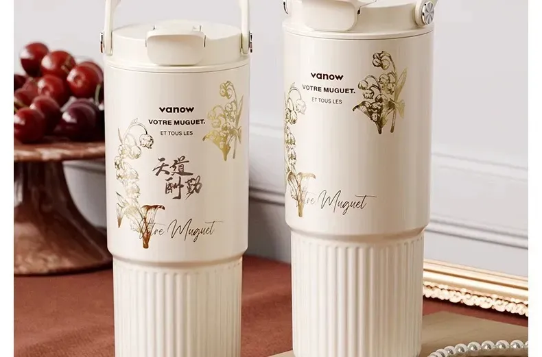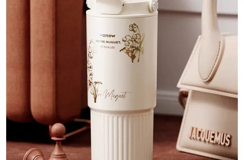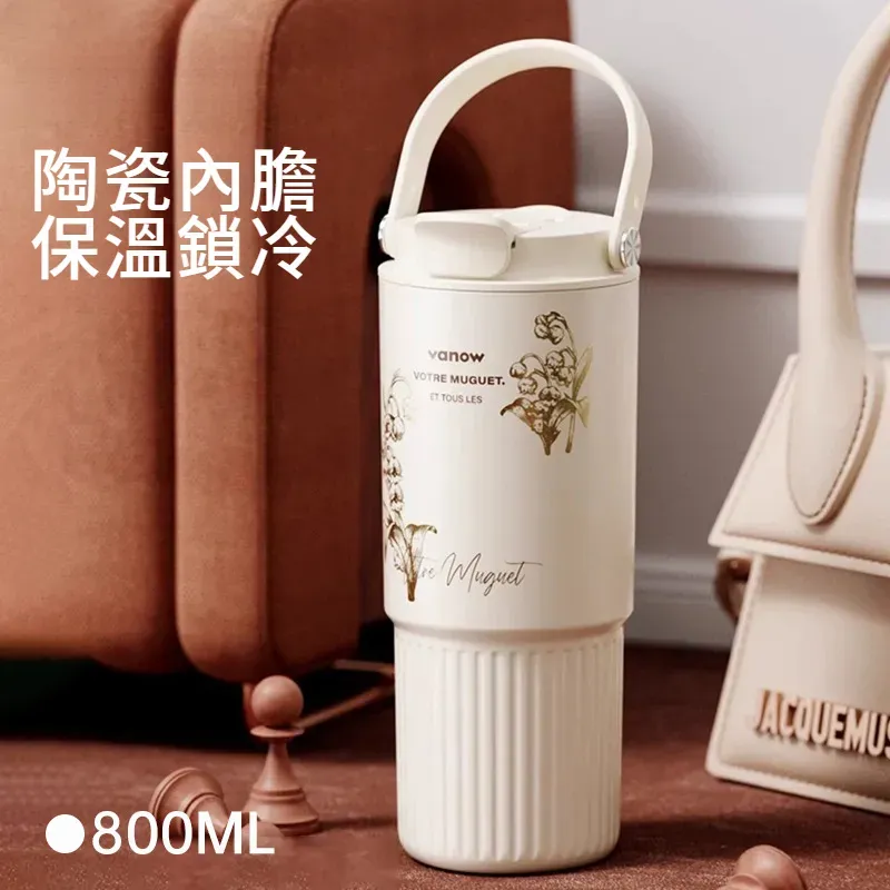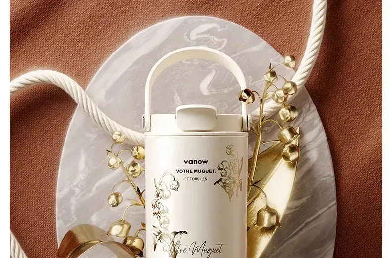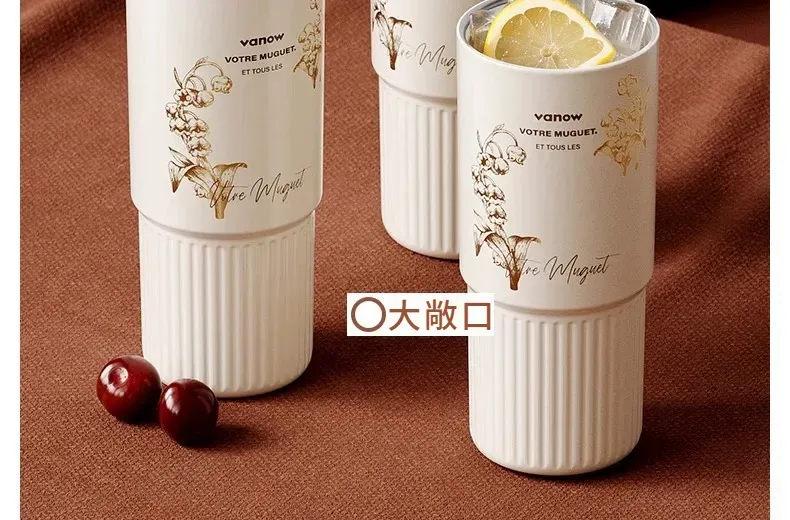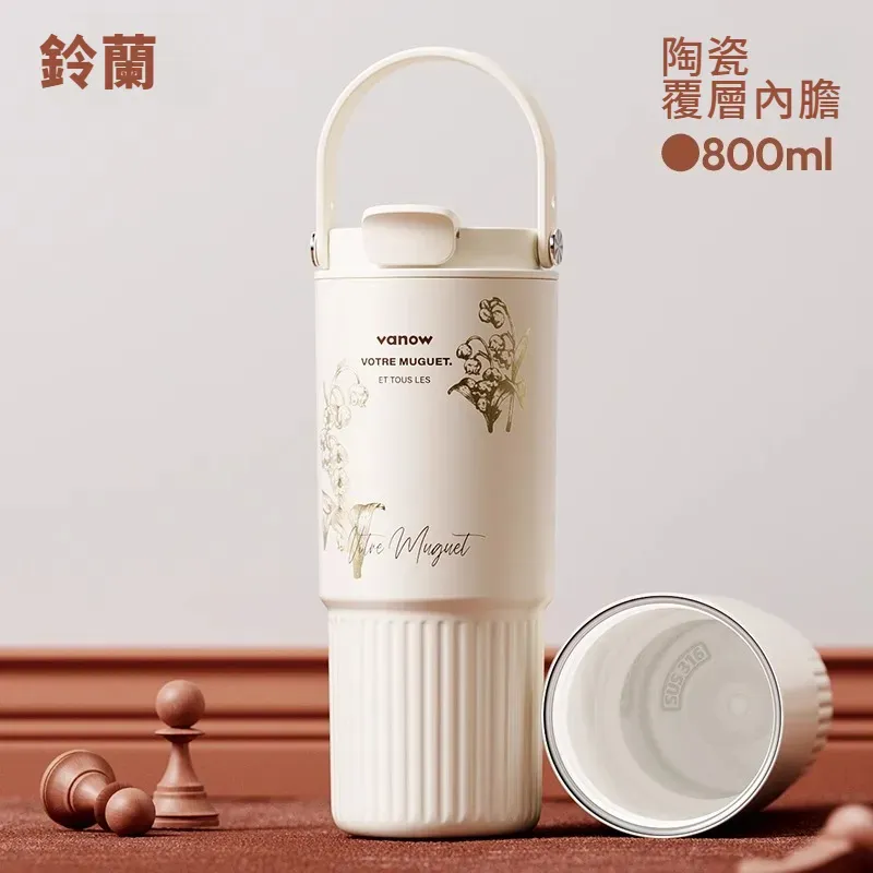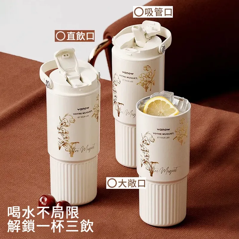 遇見鈴蘭・陶瓷覆層內膽保溫杯 | 多層鎖溫保溫保冷 | 高級杯身鎏金工藝 | 直飲吸管敞口三飲 | 可拆卸茶水分離茶倉 | VANOW高級日式保溫杯