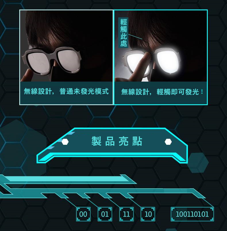 【柯南同款LED發光眼鏡】【日本爆賣超人氣】【無線可充電設計】男生最愛禮物炫酷神秘搞笑無線LED發光眼鏡