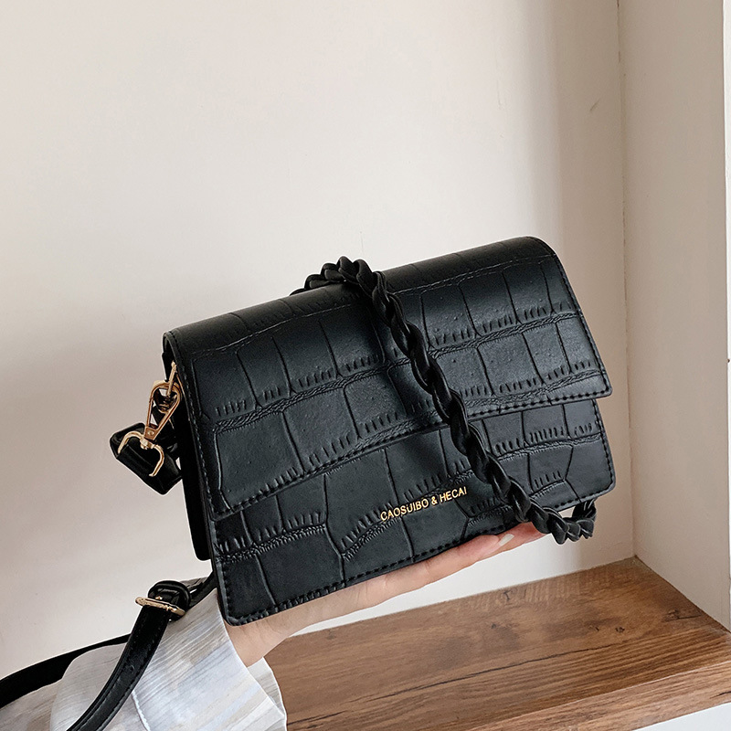氣質百搭質感壓紋個性肩帶女包小方包側背斜背包