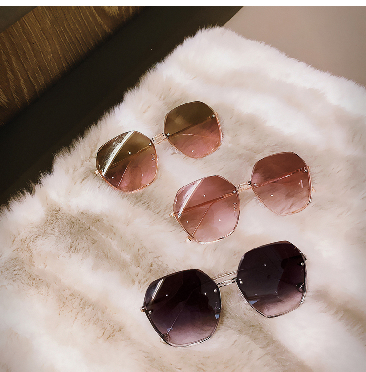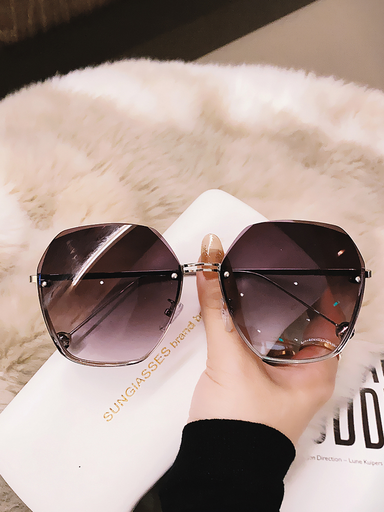 【素顏出街神器】【無框鑽石切邊】【漸變鏡片】無框切邊太陽眼鏡名媛氣質墨鏡女大臉顯瘦時尚防紫外線墨鏡