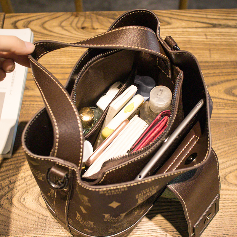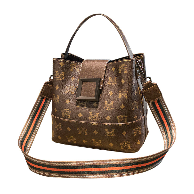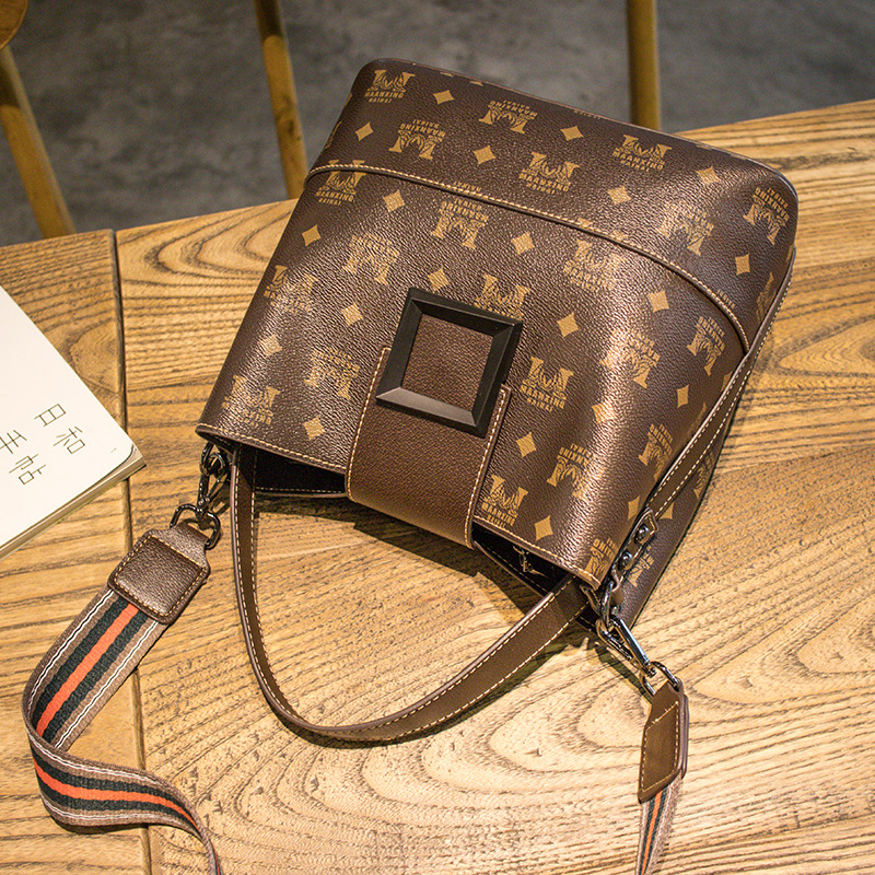 條紋寬肩帶復古時尚手提包休閑單肩包複古舒適斜背包百搭女包
