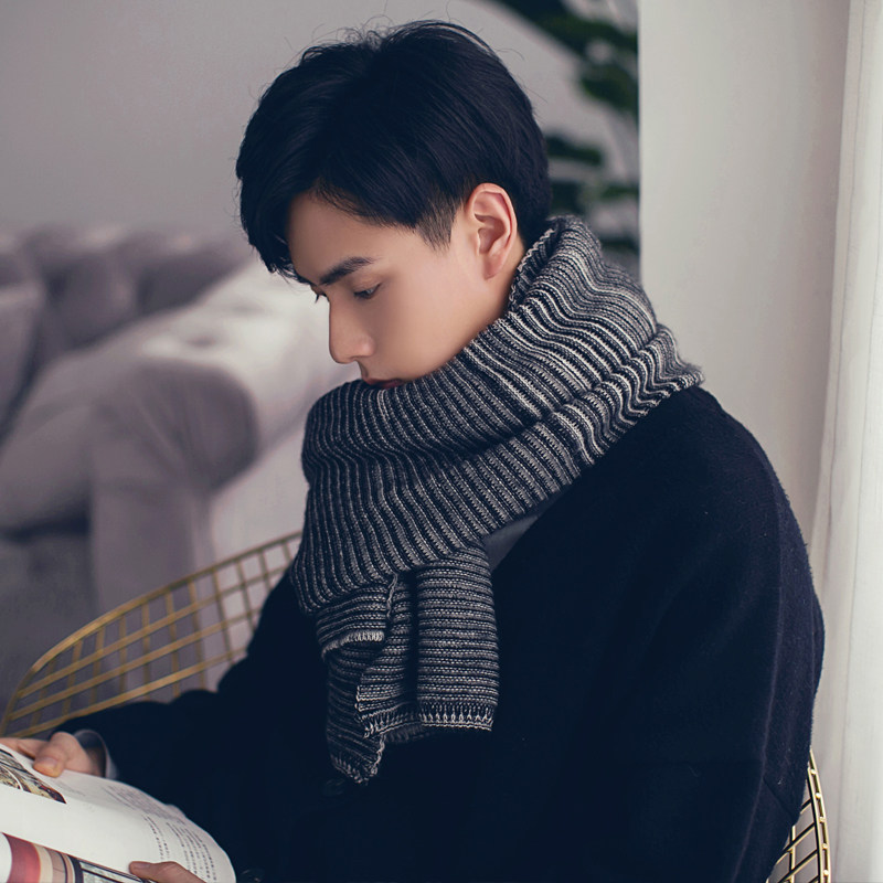【韓系條紋熟男氣質圍巾】【手工毛線針織】韓國冬季熟男氣質百搭條紋保暖男針織毛線圍脖圍巾