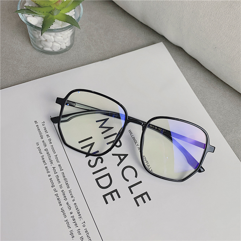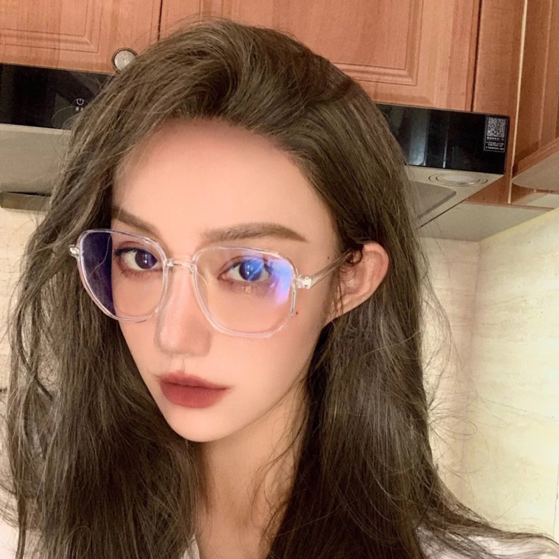 【透明大框】【防藍光】韓國名媛氣質圓臉素顏透明眼鏡框IG風大臉顯瘦大框平光防藍光眼鏡