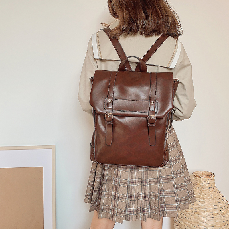 【日系JK學院風後背包】【復古油蠟皮】新款日系JK學院風雙肩後背包複古軟皮女包休閑劍橋包書包