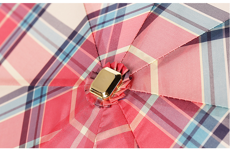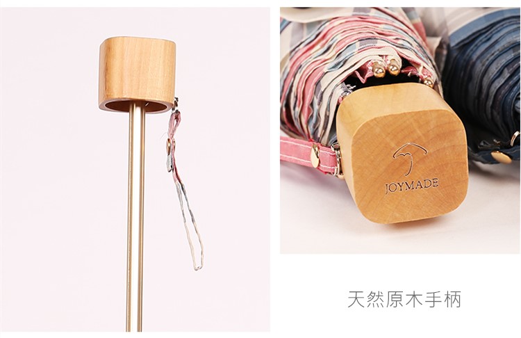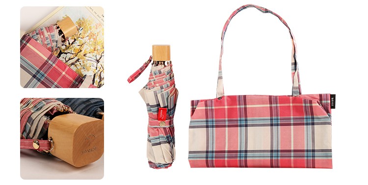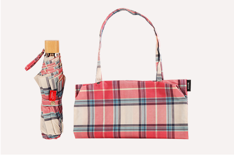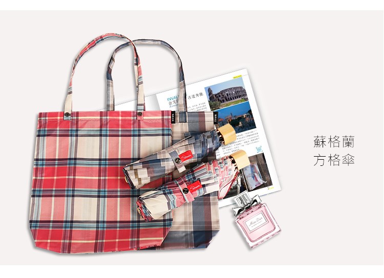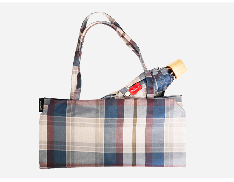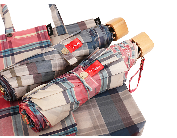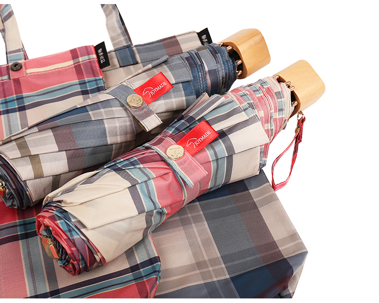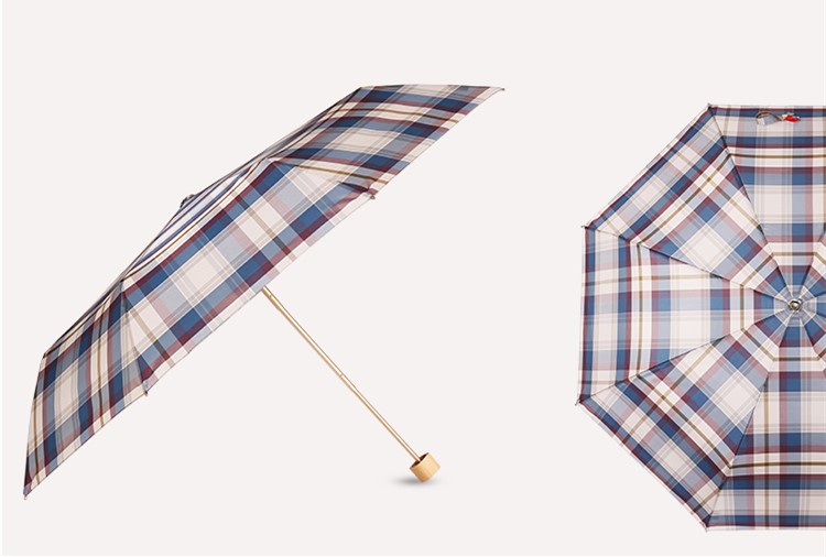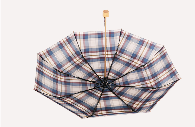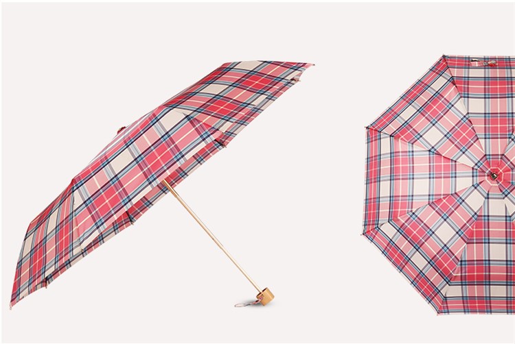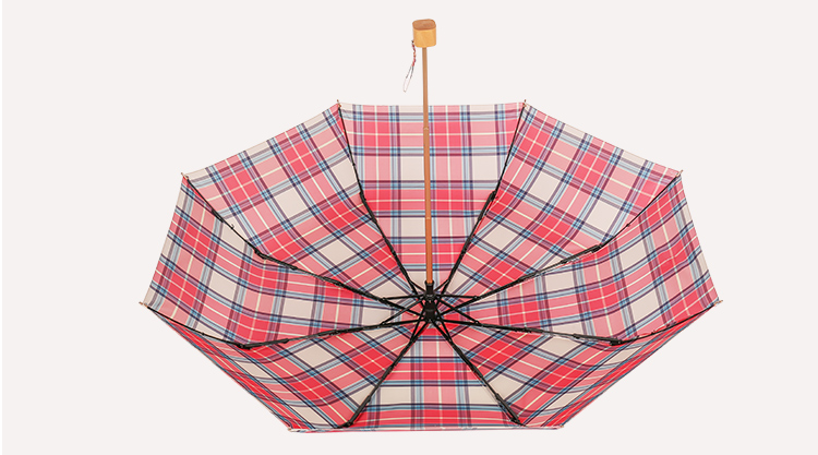 【蘇格蘭風情】原木柄方格氣質三摺折疊晴雨傘