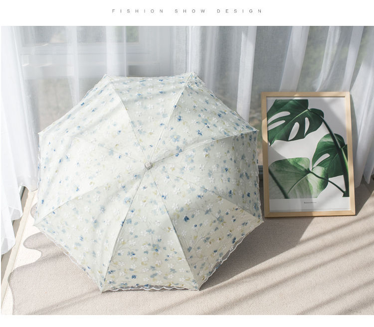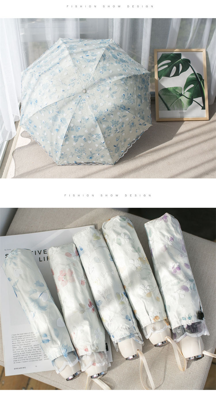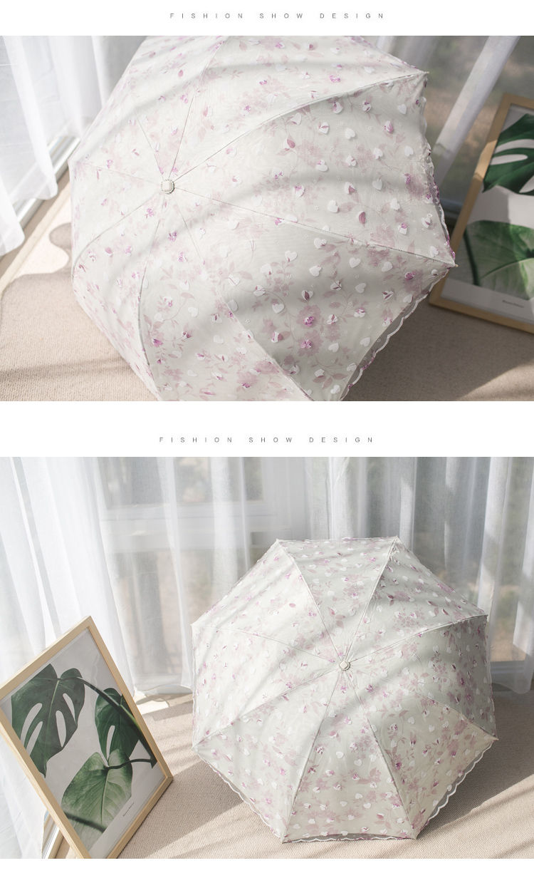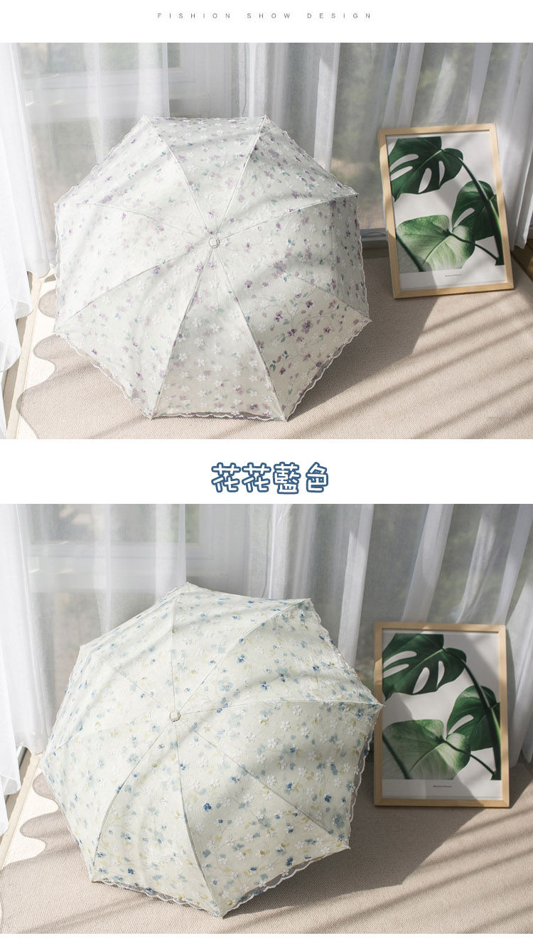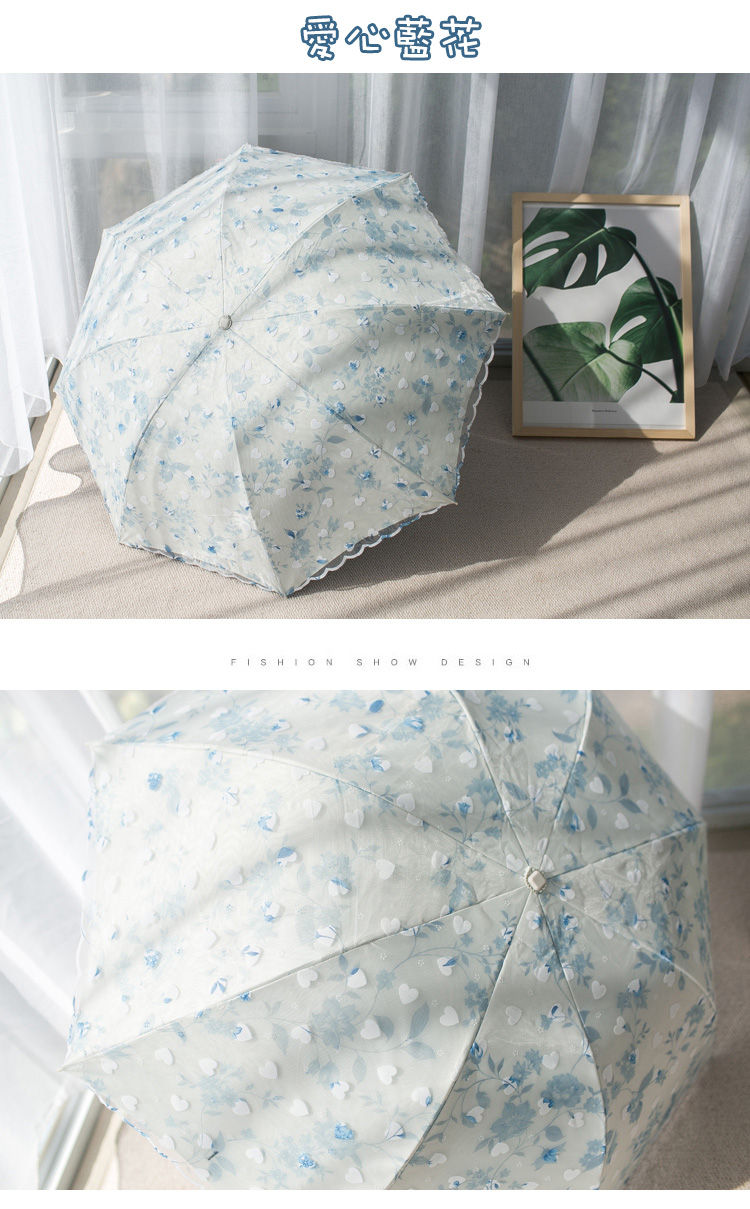 【公主蕾絲傘】【雙層花邊防曬】韓版超美優雅清新蕾絲花邊雙層防曬陽傘三折黑膠晴雨兩用折疊傘