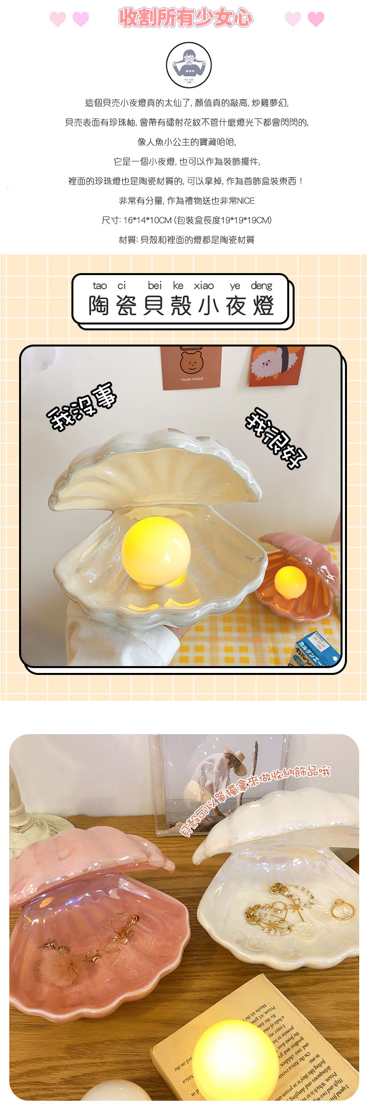 【北歐陶瓷貝殼小夜燈】超夢幻少女心禮物網紅陶瓷貝殼小夜燈