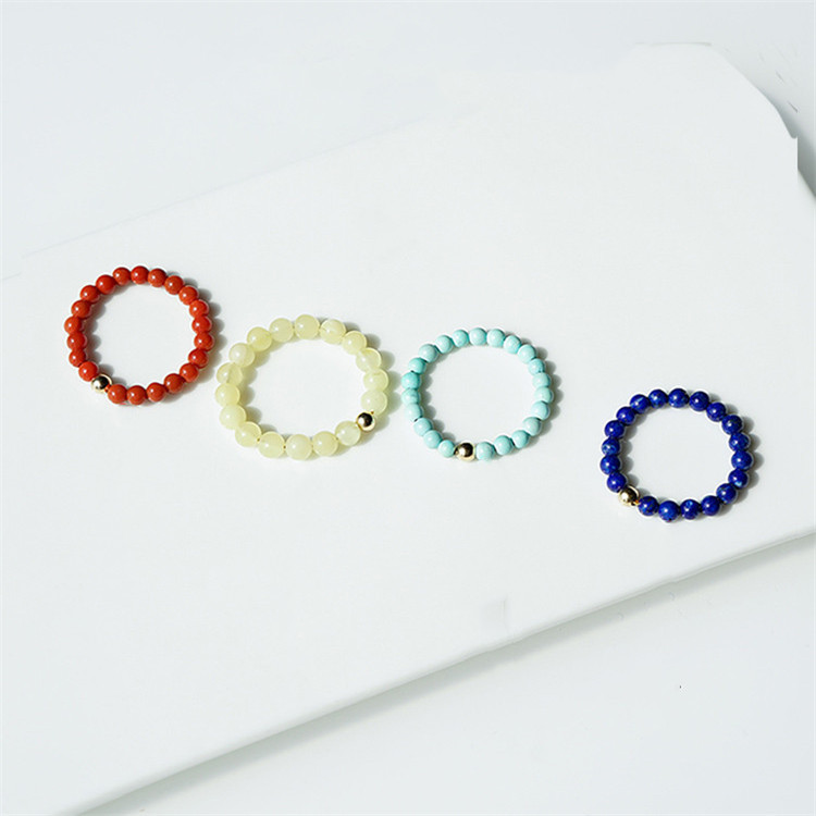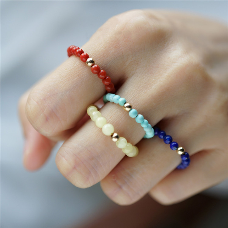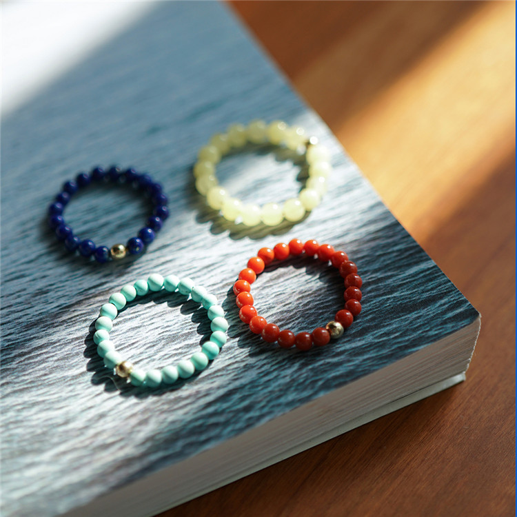 設計師款天然水晶南紅蜜蠟青金石綠松石素珠手工手串女款時尚線戒戒指