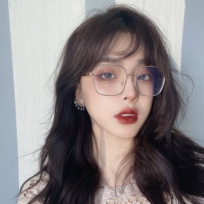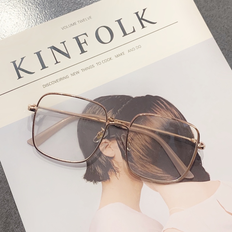 【素顏百搭顯瘦】【文藝細方框】【防藍光】日系IG風網紅素顏大框眼鏡女復古圓臉顯瘦方框平光防藍光眼鏡