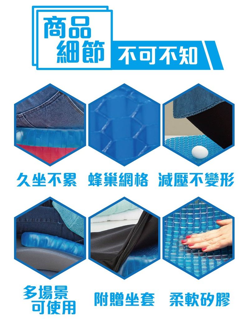 正品旗艦水凝膠減壓坐墊 | TPE 3D蜂巢微循環透氣涼感 | 8小時久坐不累 | 雙層加厚4cm | 旗艦款3D涼感蜂巢透氣減壓冷凝膠居家汽車坐墊