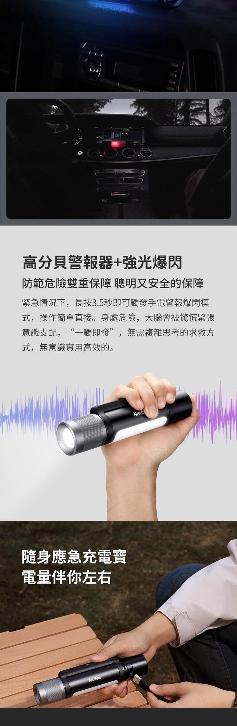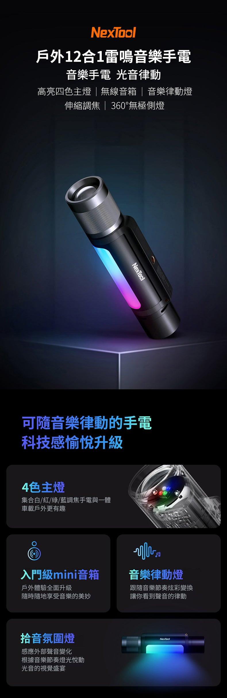 專業級戶外手電喇叭 | 拾音氣氛情境燈效 | 高亮四色主燈 | 聲光警報功能 | 可做行動電源 | 超酷送男生禮物NEXTOOL多功能強光手電無線藍牙喇叭
