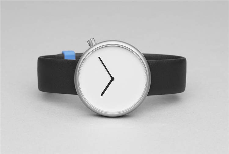 【北歐極簡】北歐設計無刻度皮帶石英腕錶銀殼黑帶