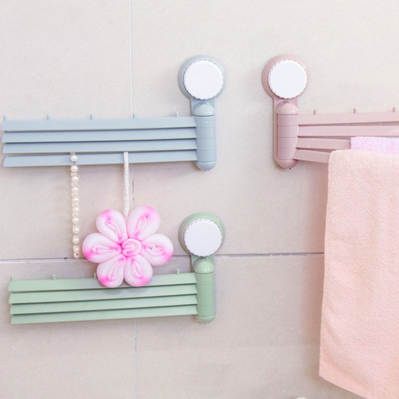 【四入】【多功能四桿毛巾架】【魔力吸盤式】日式素色多功能浴廁四桿免打孔毛巾架
