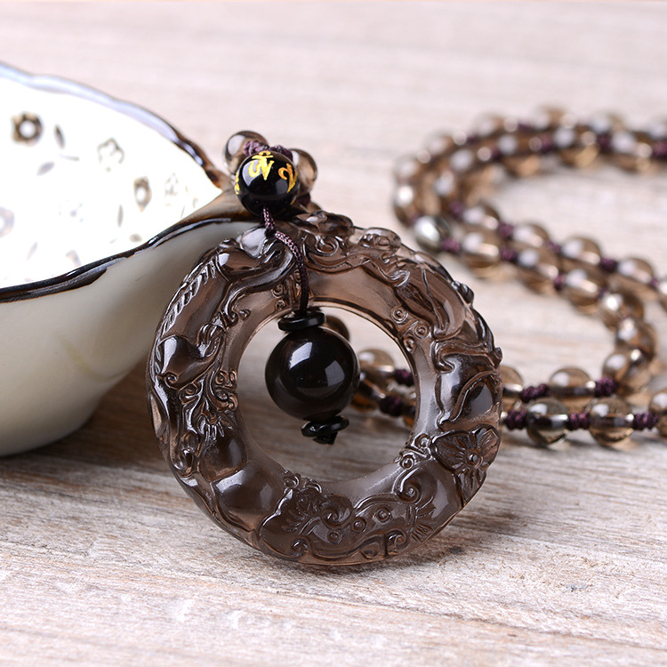 【時來運轉貔貅平安釦】【天然冰種黑曜石】時來運轉招財護身辟邪精雕手製天然冰種黑曜石平安釦吊墜項鍊 (天然冰種黑曜石)