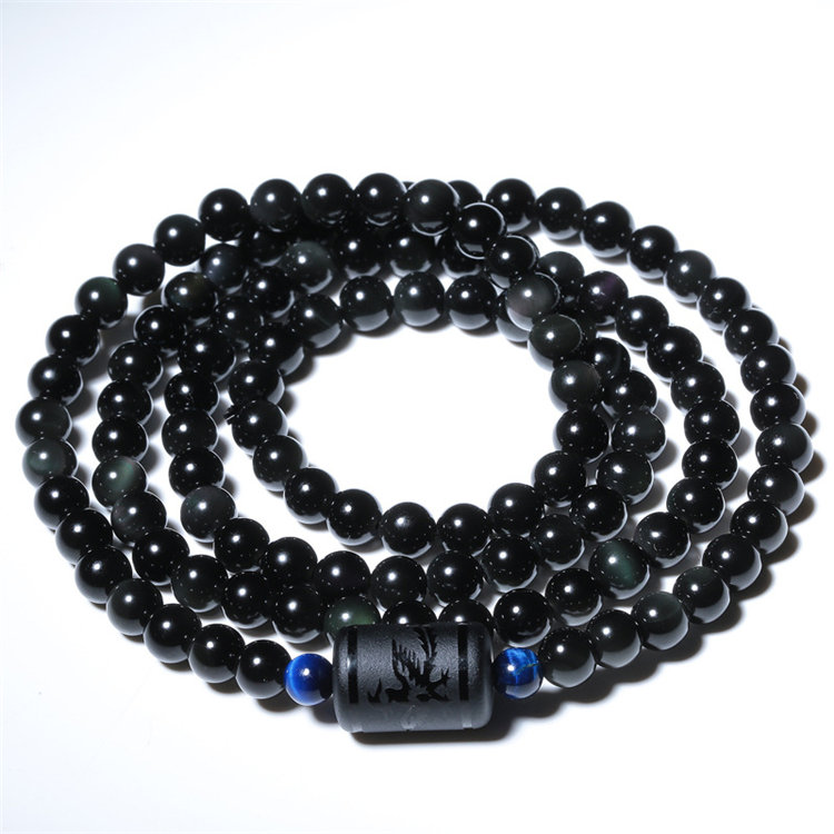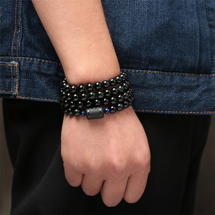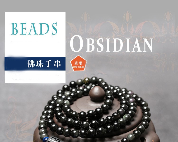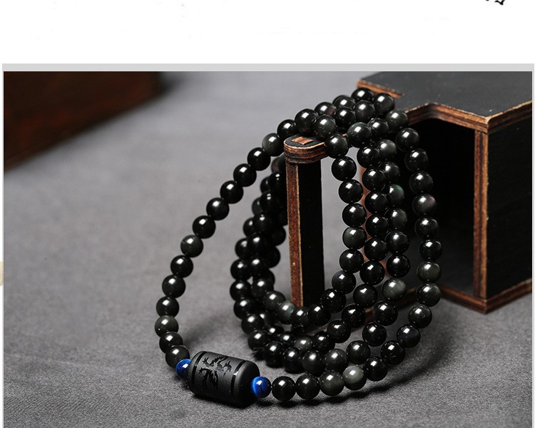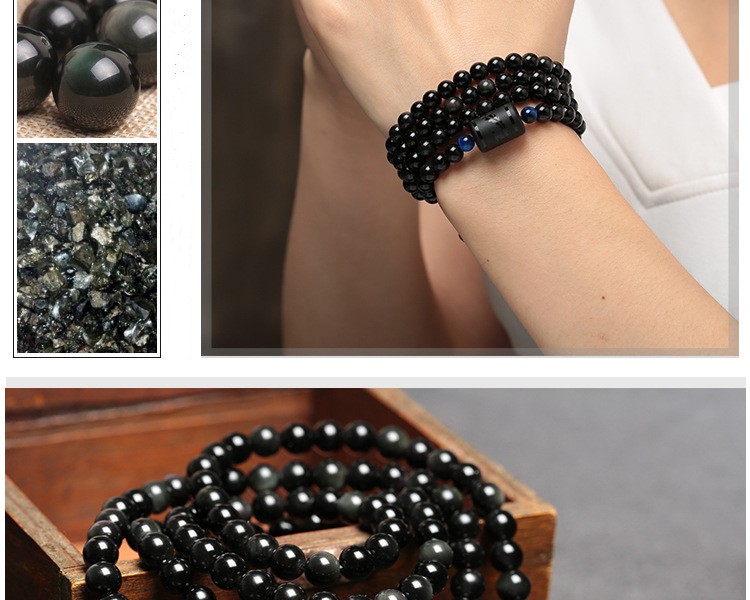 【冰島海克拉火山黑曜石】【情侶手串】超浪漫情侶禮物天然6A冰島海克拉火山黑曜石情侶多圈轉運佛珠手串