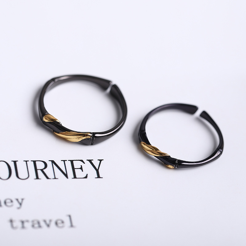 【青梅竹馬】【925銀】原創925銀情侶戒指對戒青梅竹馬墨竹金蔓韓版個性簡約個性男女情侶戒指