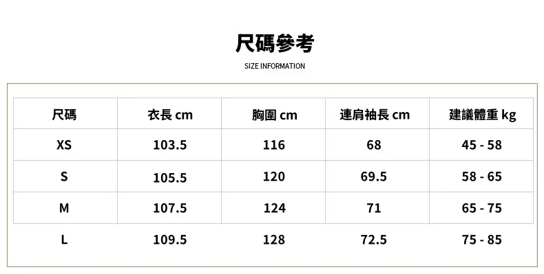 • XS【建議40-58kg】
