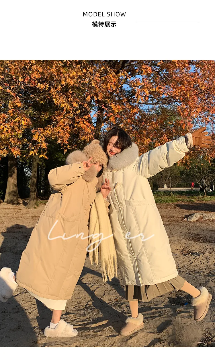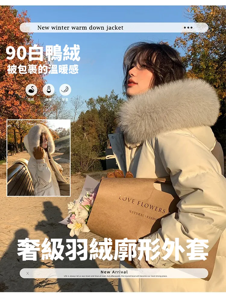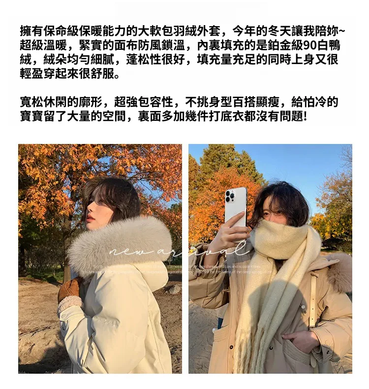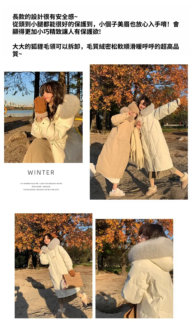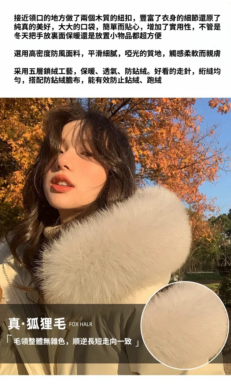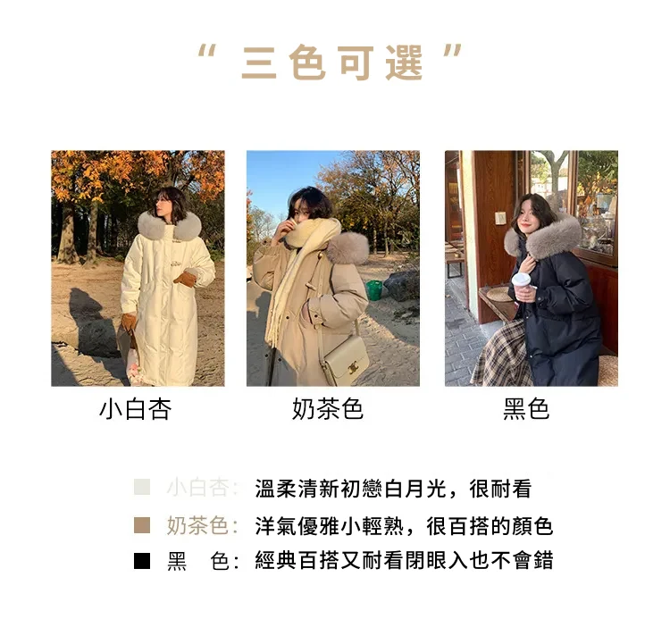 奢級包容廓形超暖羽絨外套 | 鉑金級90白鴨絨 | 超奢可拆卸名媛級大狐狸毛領 | 五層鎖絨不跑絨 | 廓形剪裁不挑身型 | 正韓百搭顯瘦長版羽絨外套