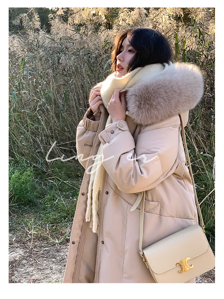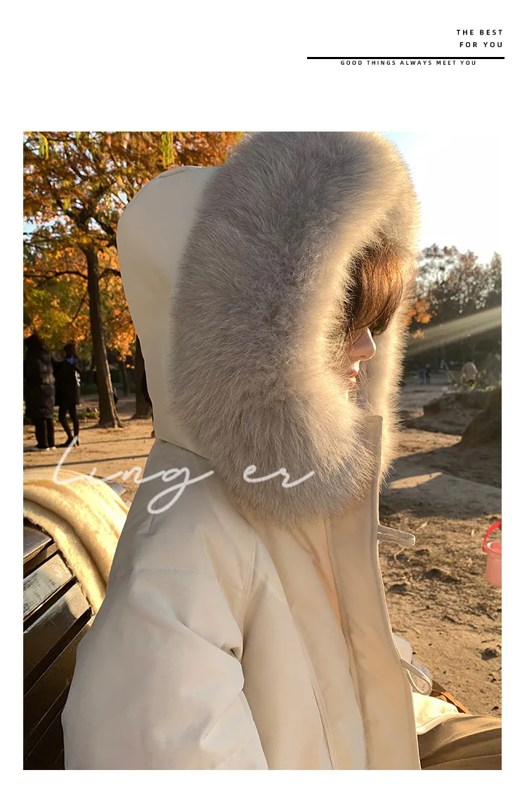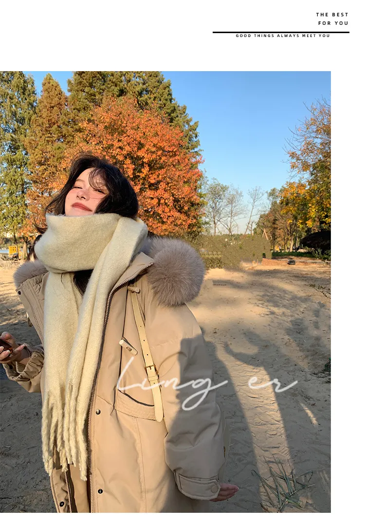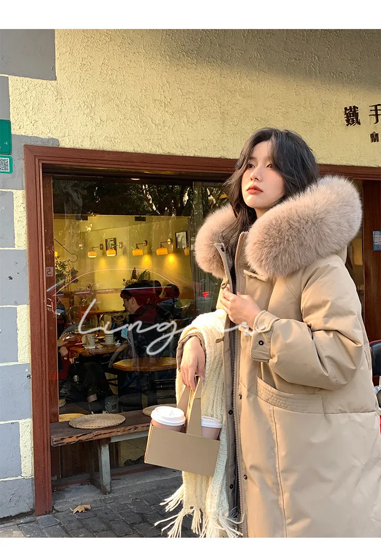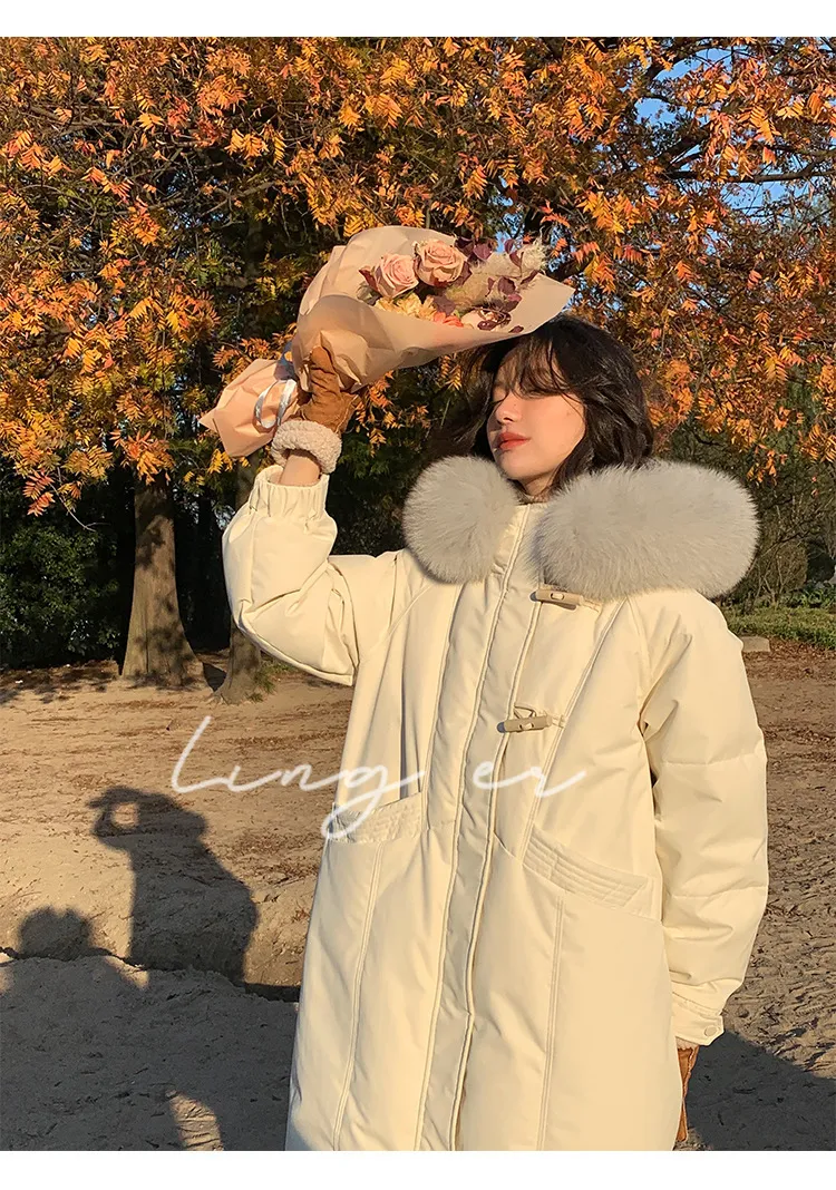 奢級包容廓形超暖羽絨外套 | 鉑金級90白鴨絨 | 超奢可拆卸名媛級大狐狸毛領 | 五層鎖絨不跑絨 | 廓形剪裁不挑身型 | 正韓百搭顯瘦長版羽絨外套