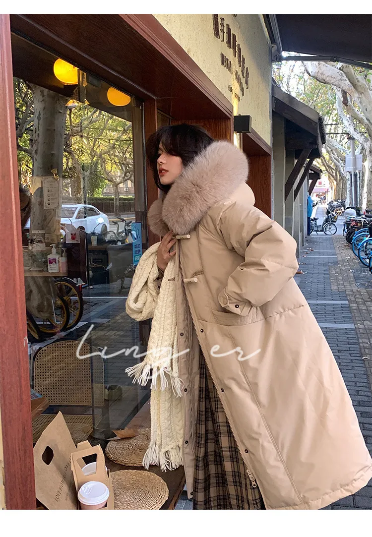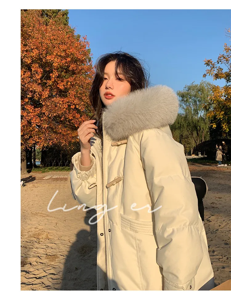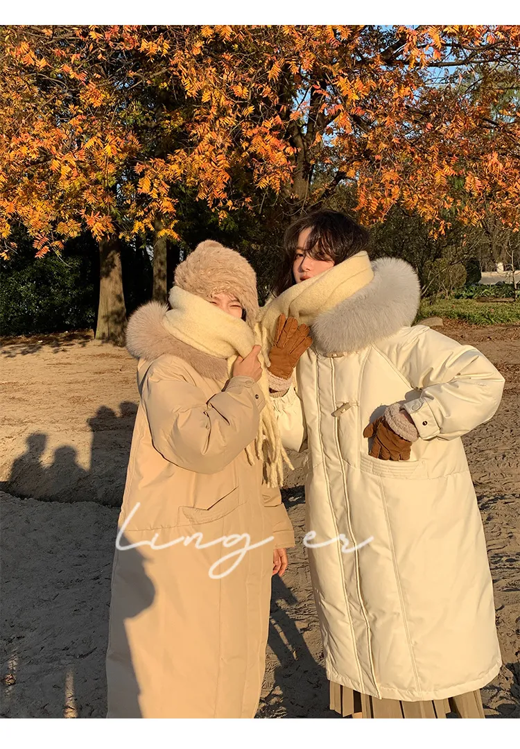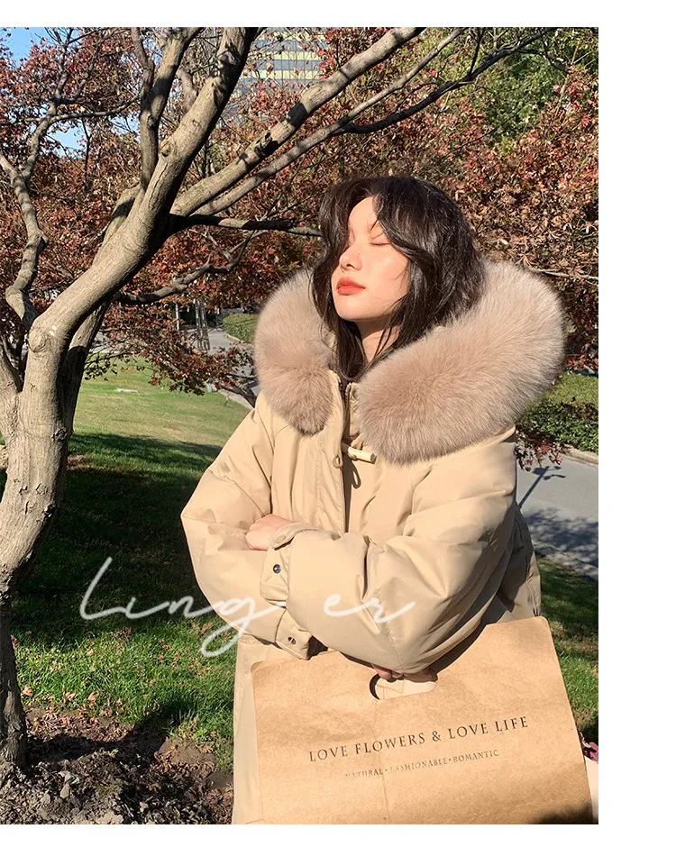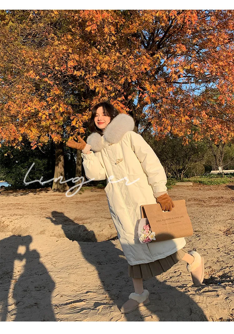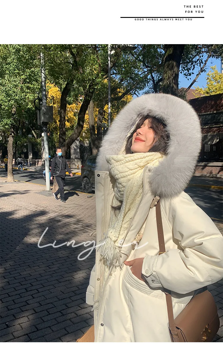 奢級包容廓形超暖羽絨外套 | 鉑金級90白鴨絨 | 超奢可拆卸名媛級大狐狸毛領 | 五層鎖絨不跑絨 | 廓形剪裁不挑身型 | 正韓百搭顯瘦長版羽絨外套