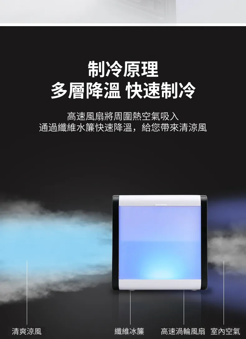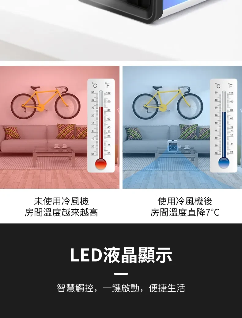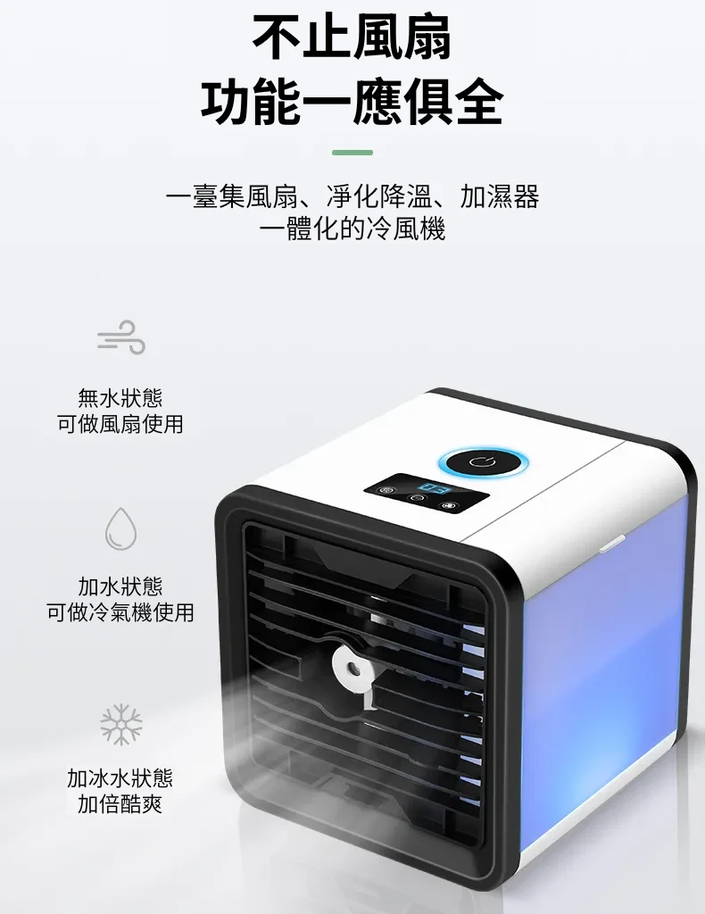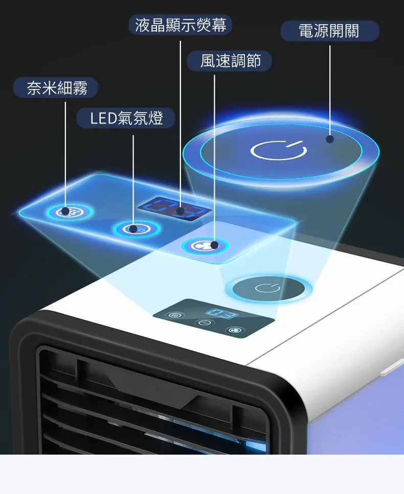 涼風勁爽迷你水冷空調扇冷氣機 | 渦輪增壓奈米冰霧 | 廣域送風三檔調速 | LED液晶觸控 | 七色氣氛夜燈 | 高級桌式個人水冷空調扇冷氣機