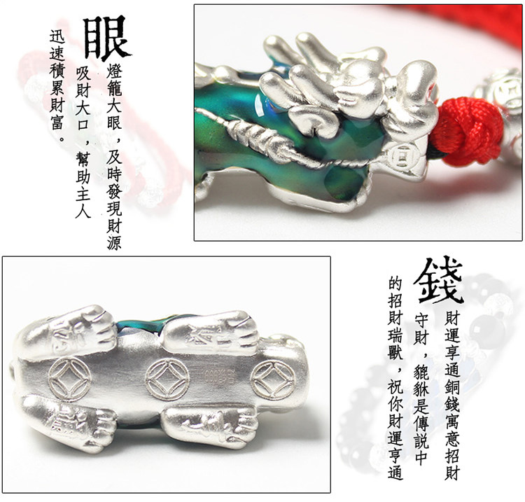 針對財運不順、氣場較弱的人 改變貔貅色澤,同時轉換周遭不良磁場 進而補足低落的運勢與命中五行所缺 趕走厄運與邪氣,護佑財運保平安