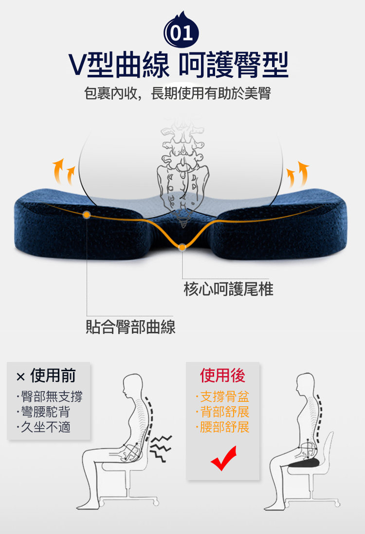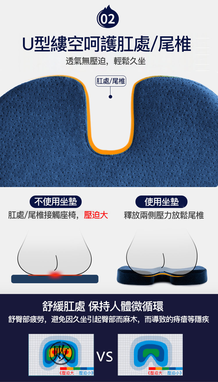 【尾椎懸空護理】【痔瘡防護】【3D立體記憶棉】高級3D立體記憶棉內芯強支撐舒適透氣護尾椎坐墊