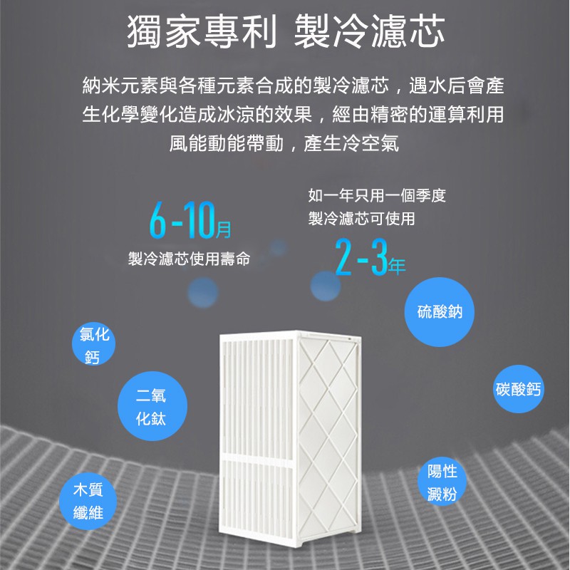 -本款產品耗電只有2.5W,而且沒有一般冷氣機冷媒以及熱氣排放問題,除了環保節能愛地球以外,還可以幫你省下不少錢。