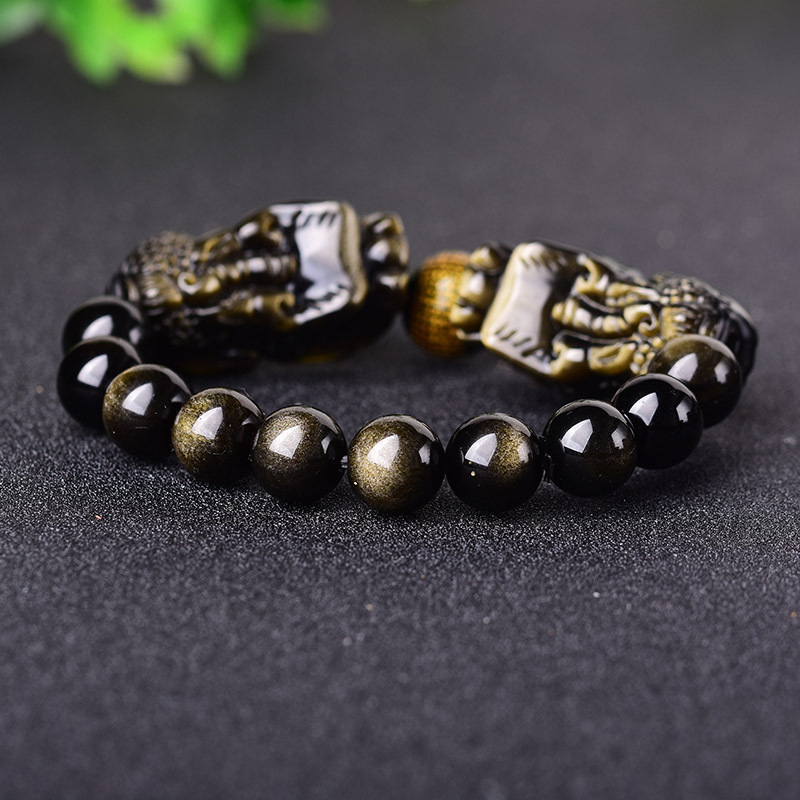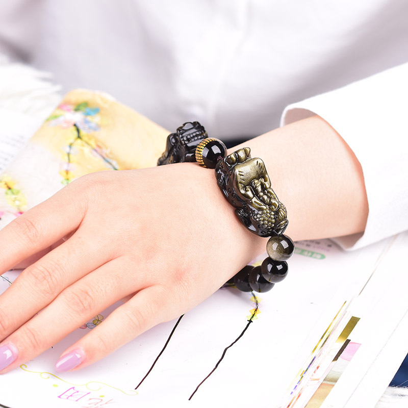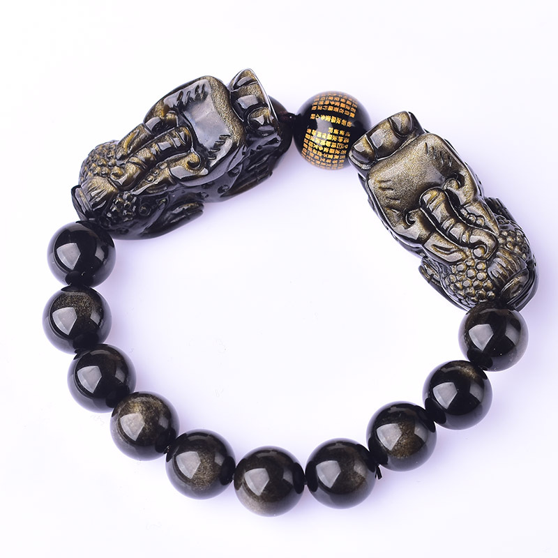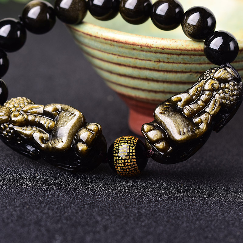 【7A收藏級天然金曜石】【雙龍頭貔貅】【心經開運珠】名貴收藏級金曜石雙龍頭貔貅配心經開運珠手串男女招財手鍊