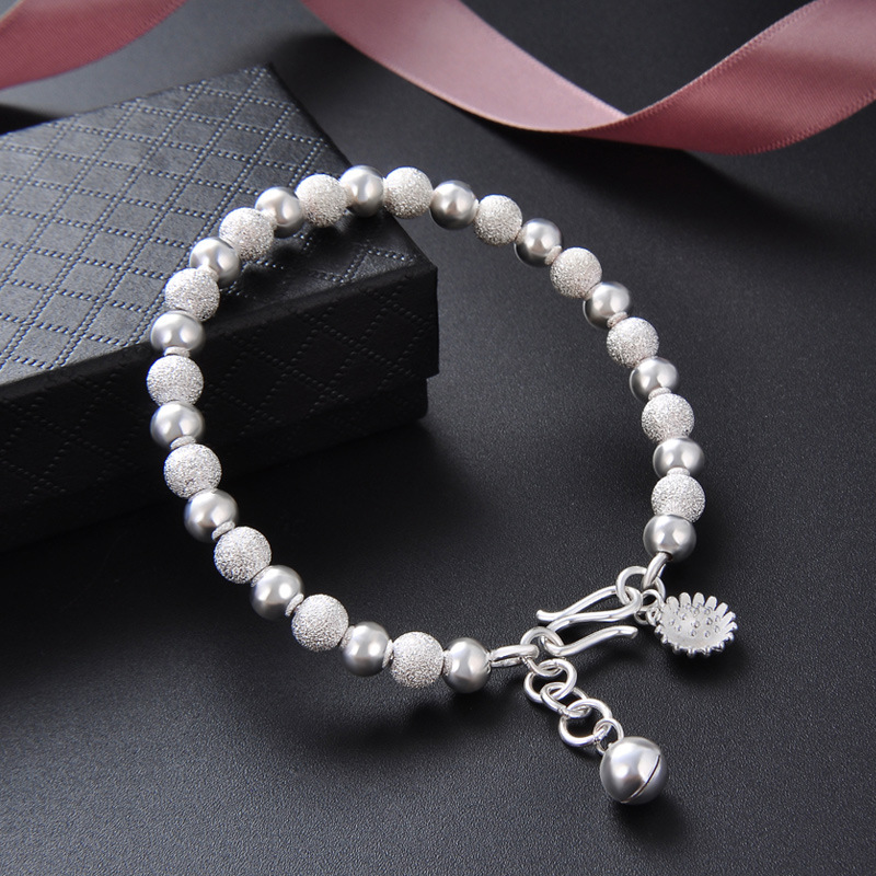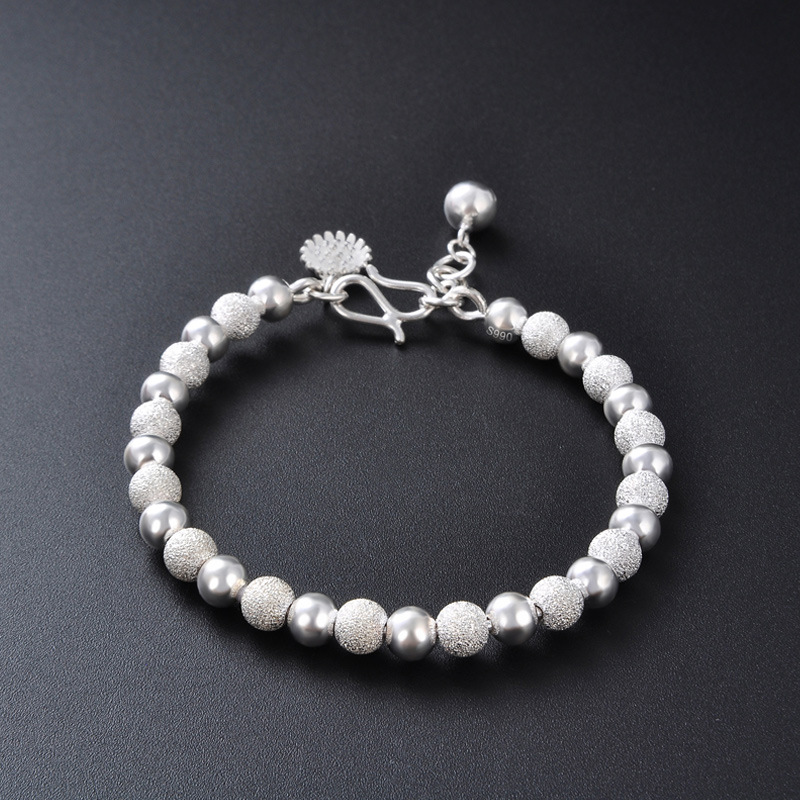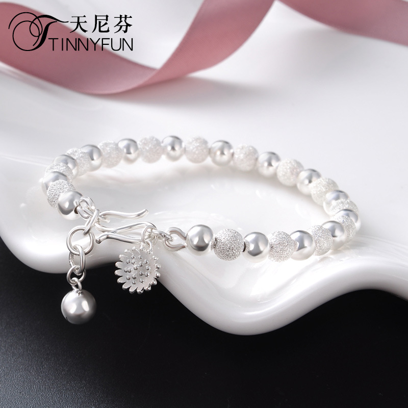 【花火流光】【990足銀】【磨砂光面圓珠】設計師款高級氣質990足銀磨砂光面圓珠雛菊女時尚百搭手鍊