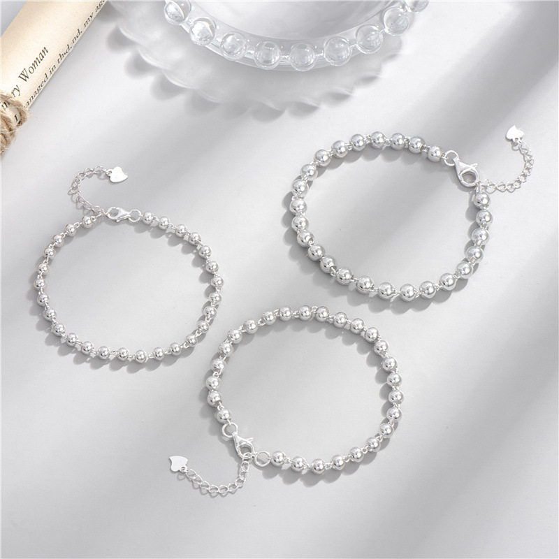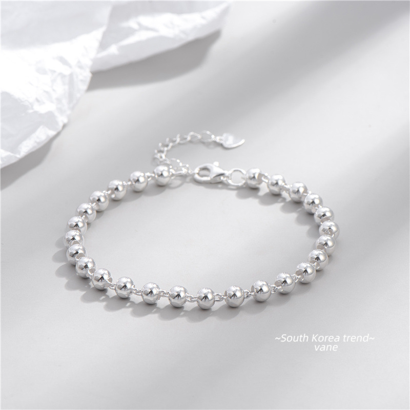 【正韓設計師款】【925純銀】設計師款高級氣質簡約925純銀素珠亮銀女時尚銀手鍊