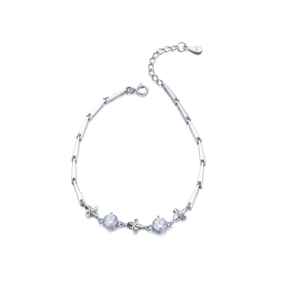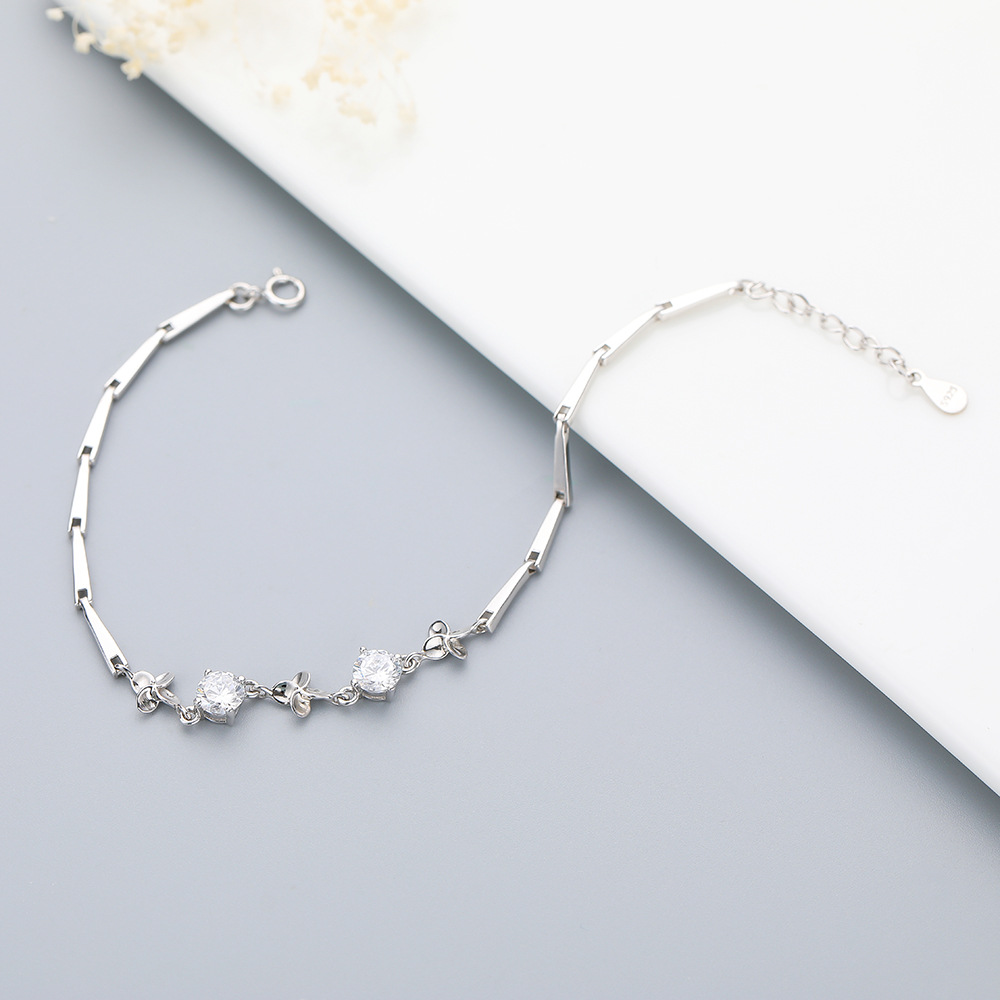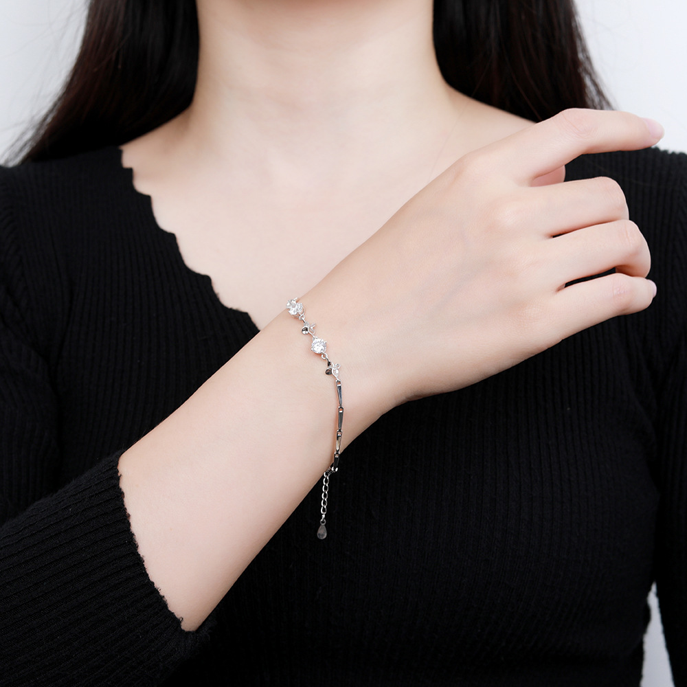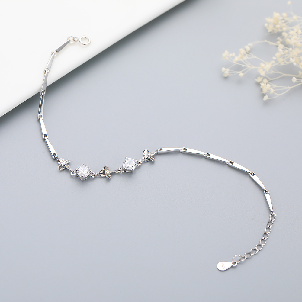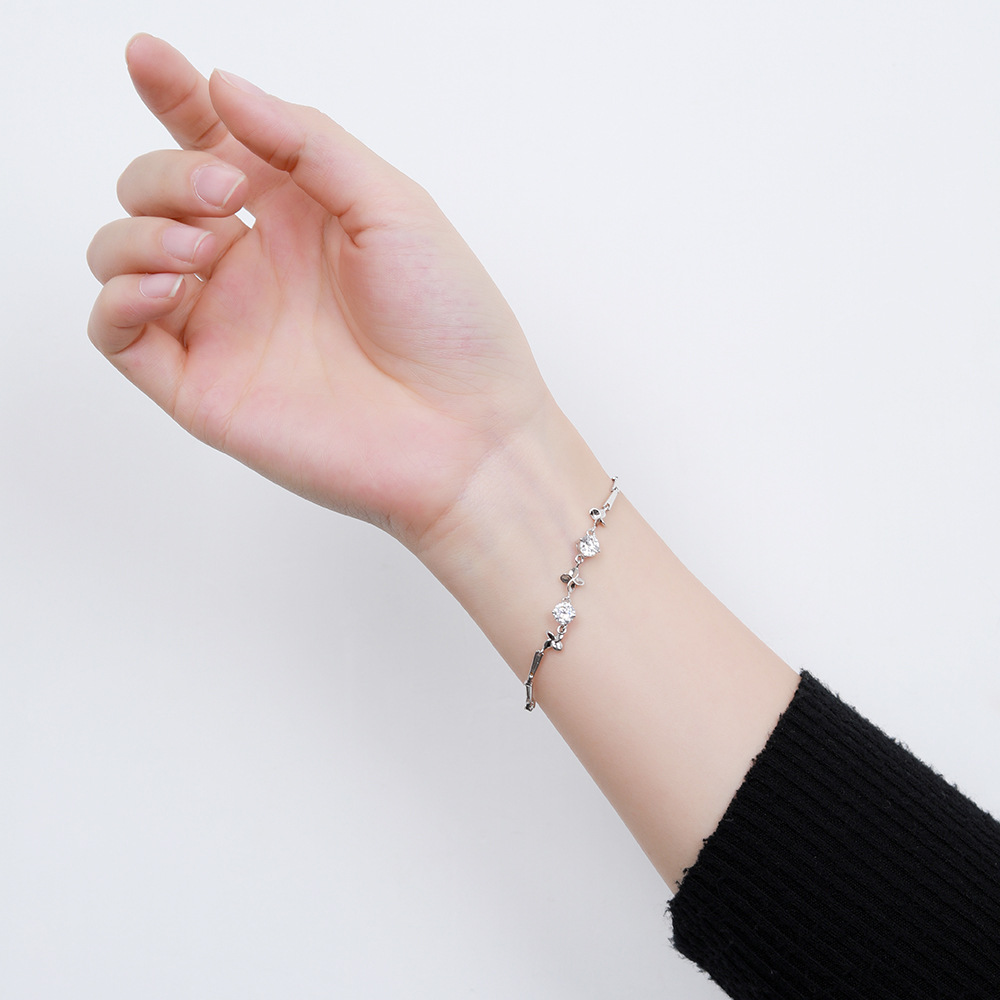 【925純銀幸運四葉草】【鑲嵌鋯鉆】文藝森系OL氣質S925純銀幸運四葉草手鍊鑲嵌鋯鉆時尚氣質女手鍊
