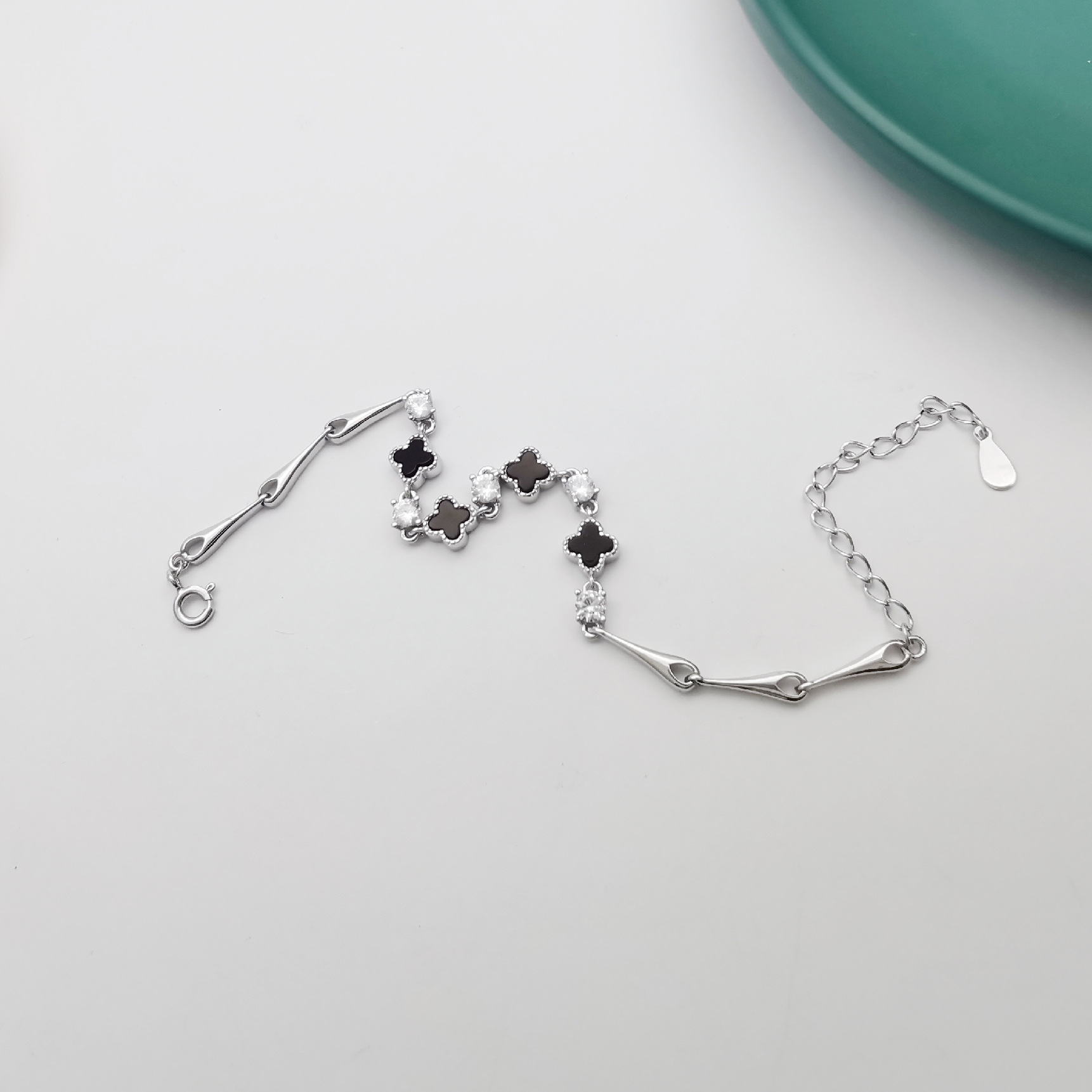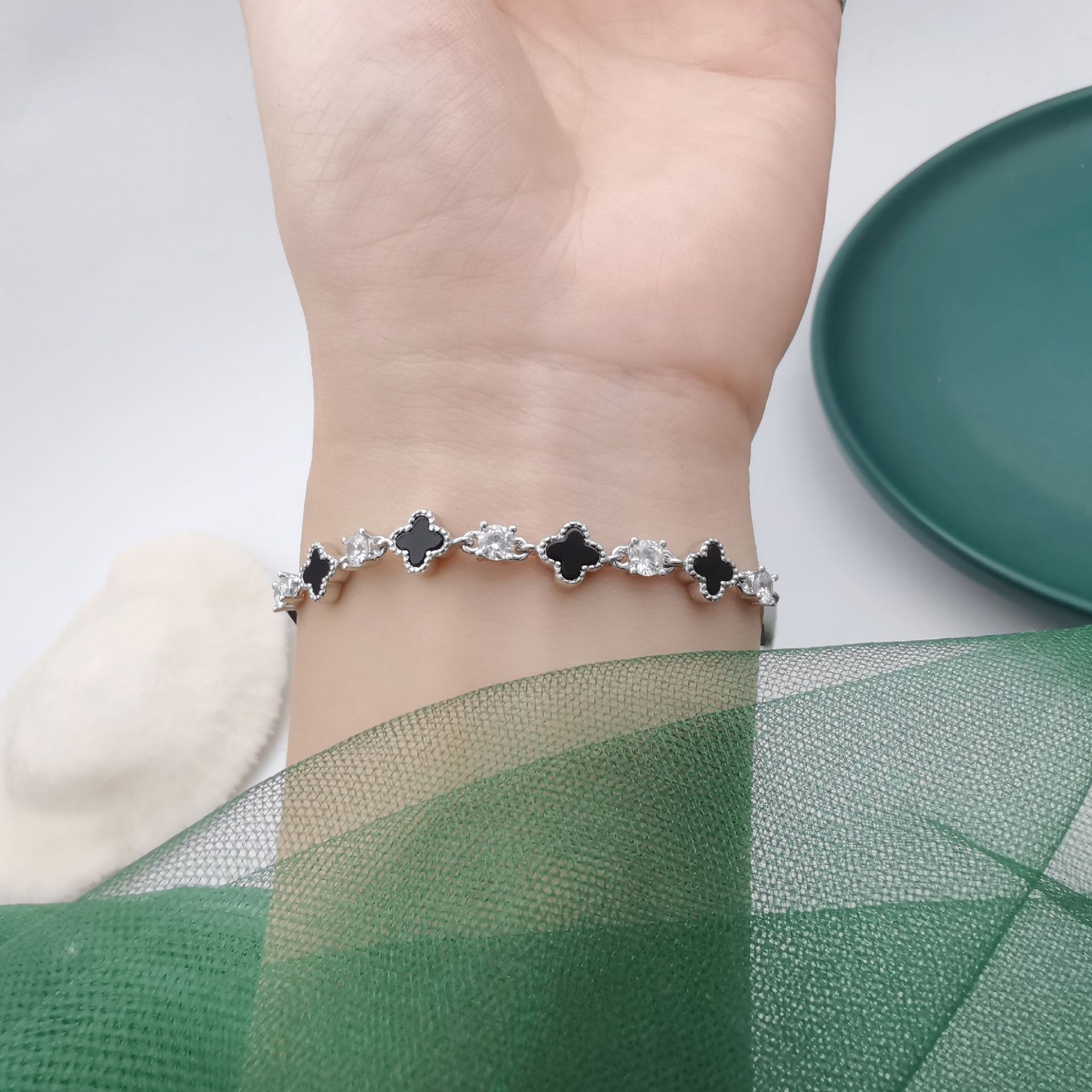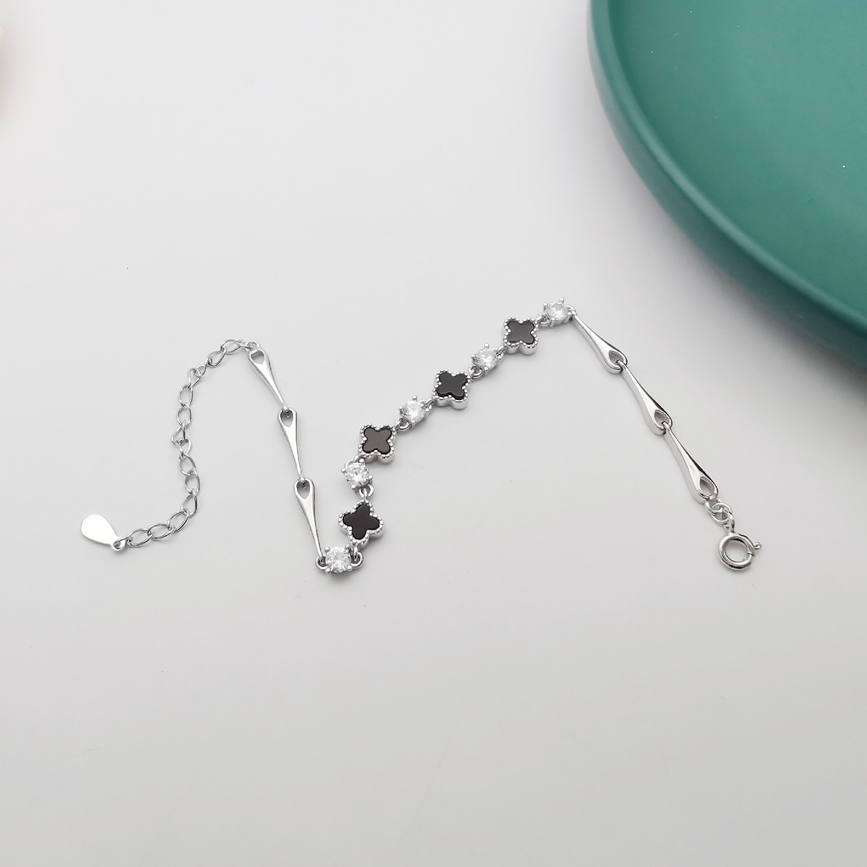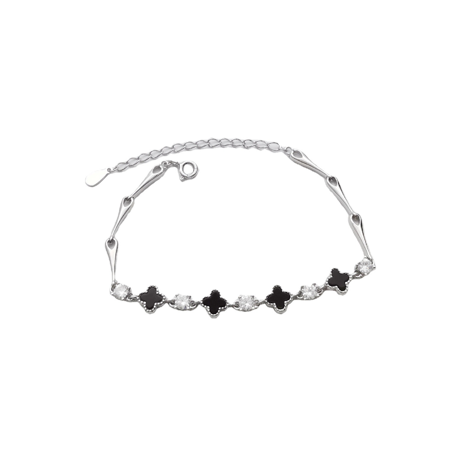 【幸運黑瑪瑙四葉草】【925純銀】高級氣質法式黑瑪瑙四葉草S925純銀時尚文藝女手鍊