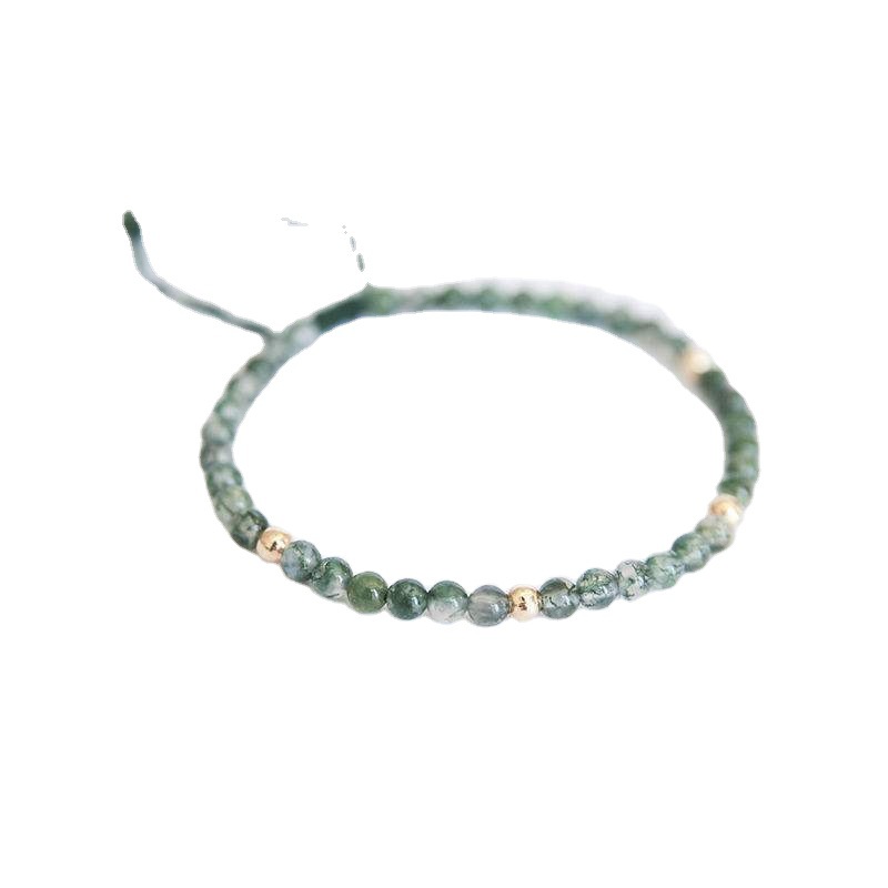 【天然水草瑪瑙】【14K包金轉運隔珠】清新夏日感森系氣質手工編織天然水草瑪瑙手串14K包金轉運珠女水晶手鍊