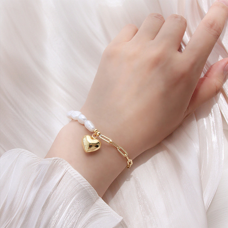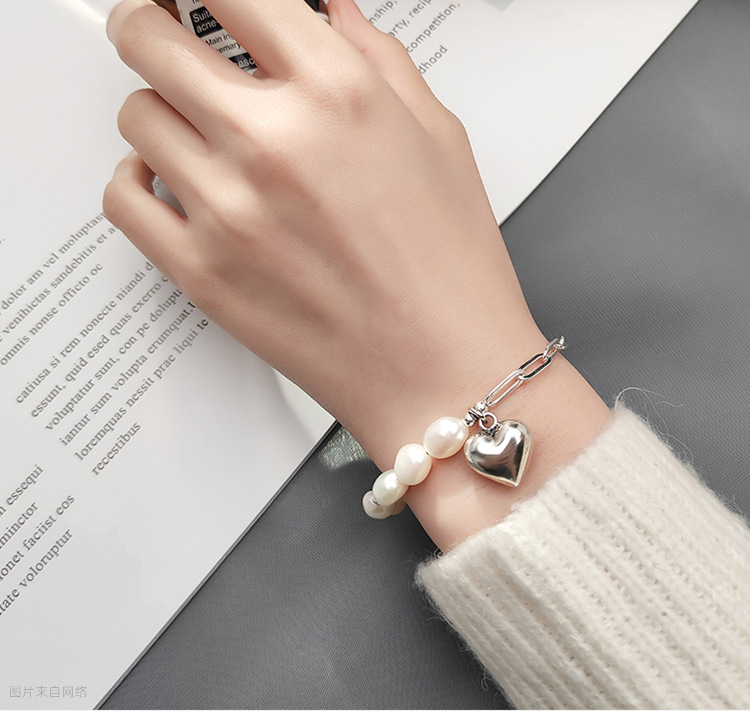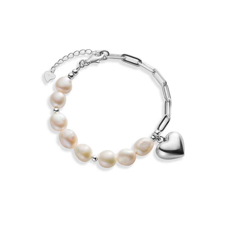 【925純銀】【巴洛克珍珠】設計師款高級氣質925純銀搭配巴洛克珍珠桃心時尚女手鍊