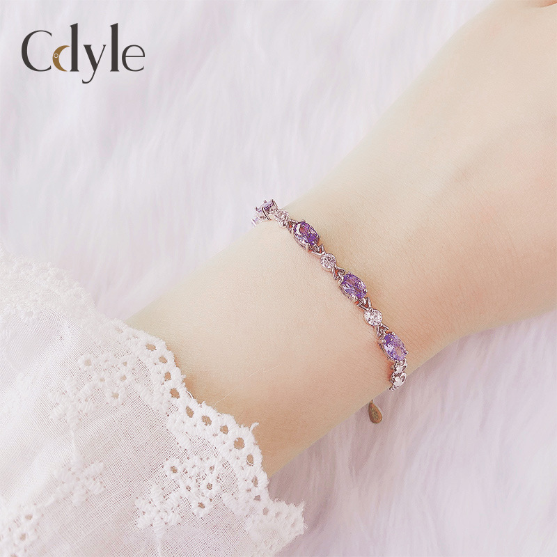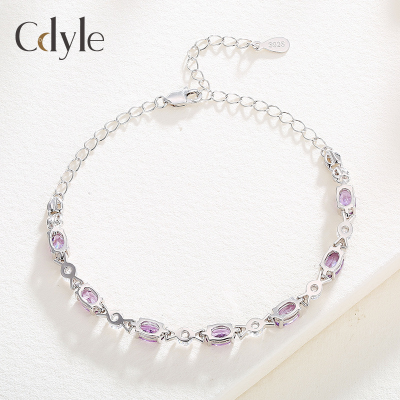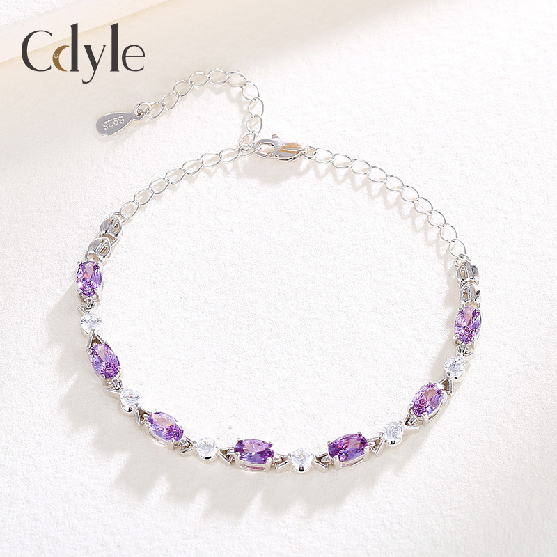 【薰衣草紫鋯鉆】【925純銀】韓劇熱播高級OL氣質時尚百搭S925純銀手鍊鑲嵌薰衣草紫鋯鉆女手鍊