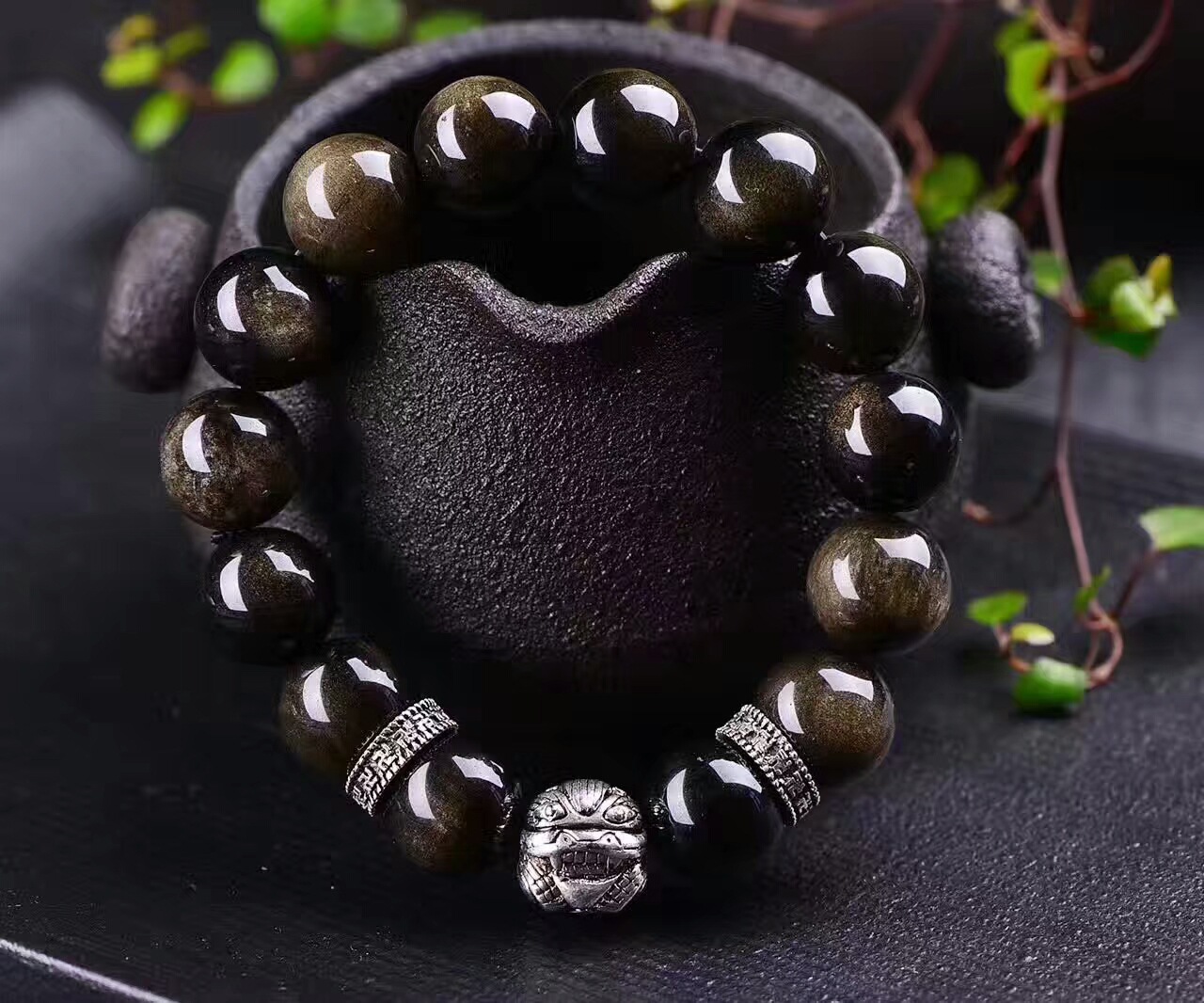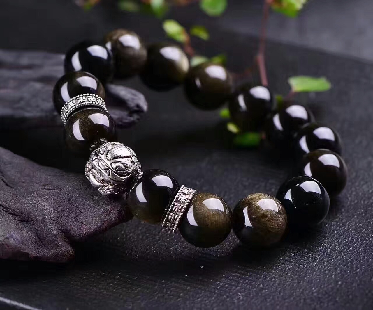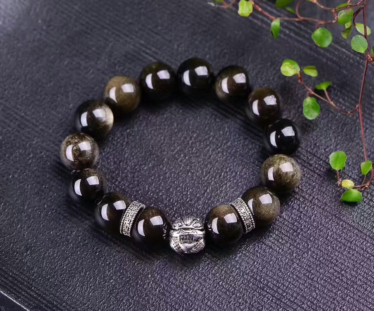 【天然5A級金曜石】【藏銀貔貅】設計師款天然5A級金曜石手鍊搭配藏銀貔貅男女招財辟邪護身手串手鍊
